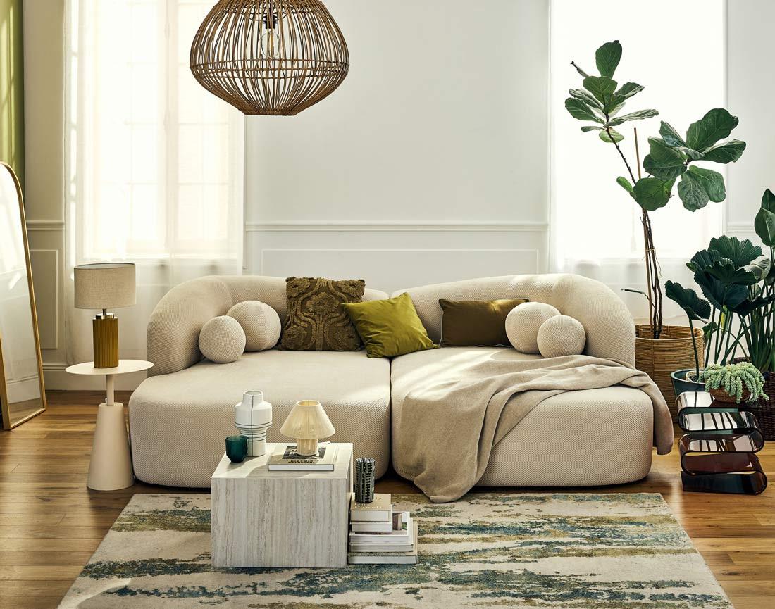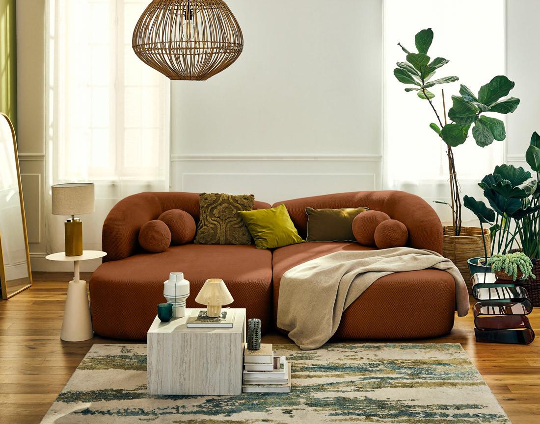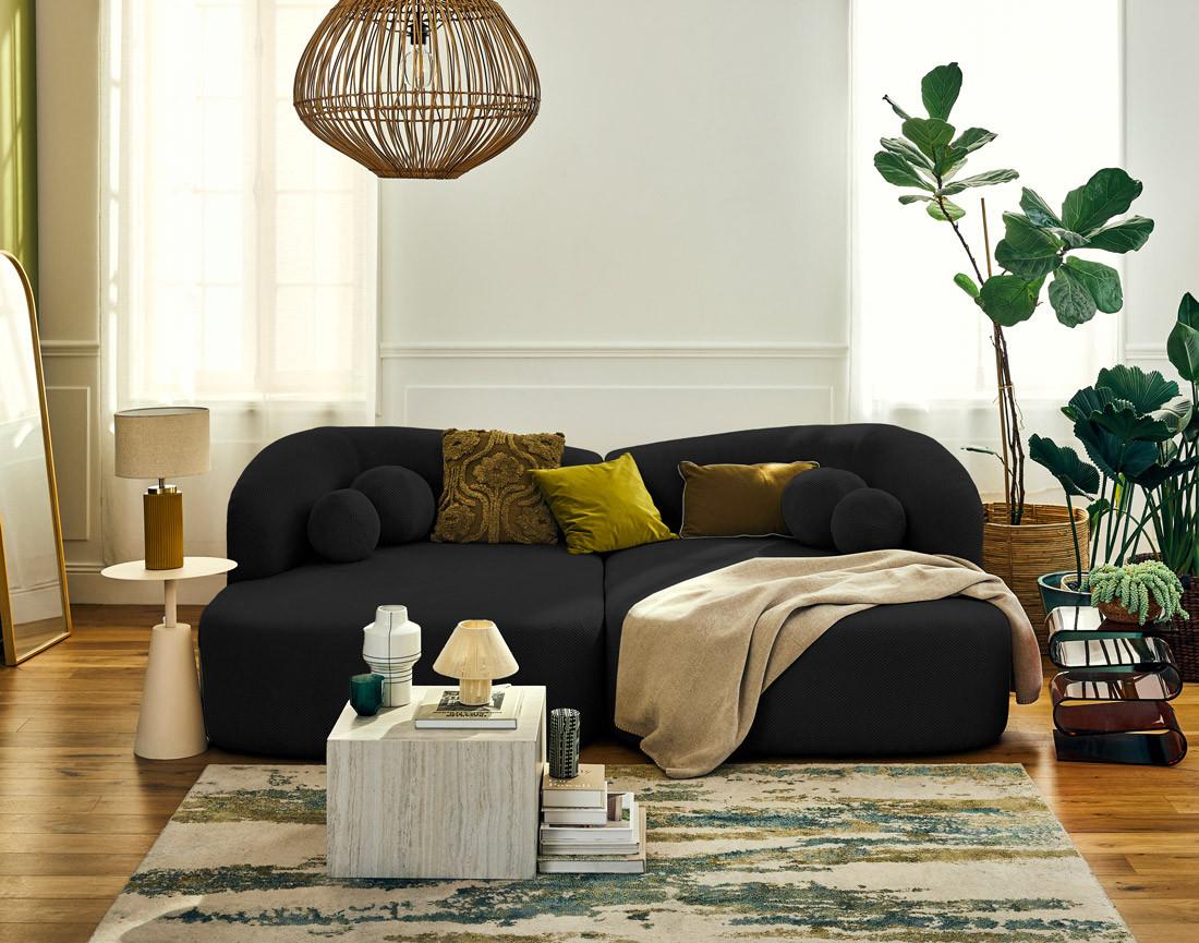- Présentation de la collection : La collection Charles propose des canapés en velours texturé, alliant élégance intemporelle, forme organique et grande profondeur d'assise. Les coussins boules décoratifs apportent une touche raffinée et moderne à votre intérieur