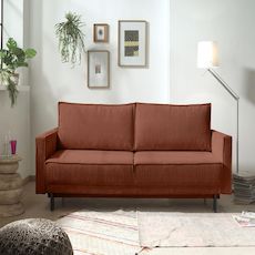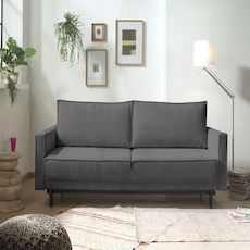 - Détail des matières : Assise : Mousse polyéther de densité 28Kg/m3 + ouate 150g/m2 – Dossier : Flocons de mousse - Suspensions : Ressorts plats – Structure en bois massif et panneaux de particules - Tissu velours côtelé 100% polyester – Pieds en métal noir