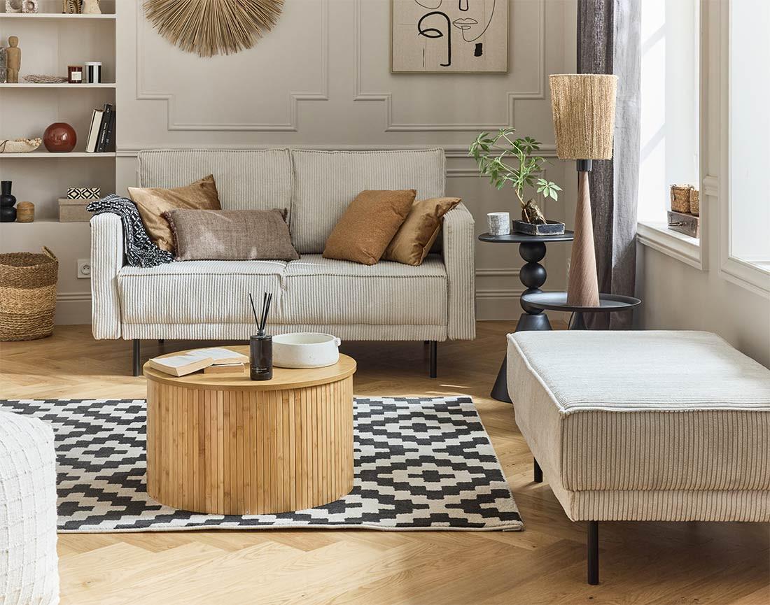 Pour un intérieur encore plus élégant, vous pouvez l'associer avec le canapé 3 places, le fauteuil ou encore le pouf de la même collection.