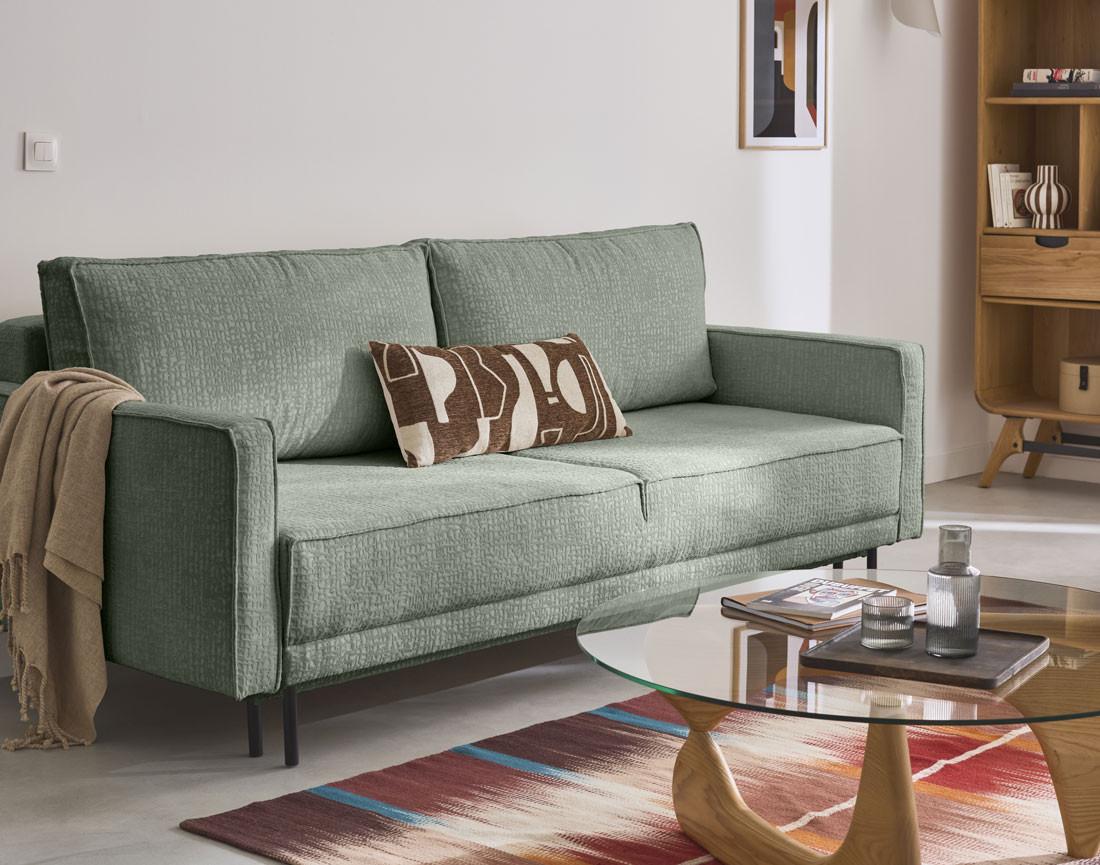 Charlie - canapé droit 3 places - convertible avec coffre - en tissu velours relief