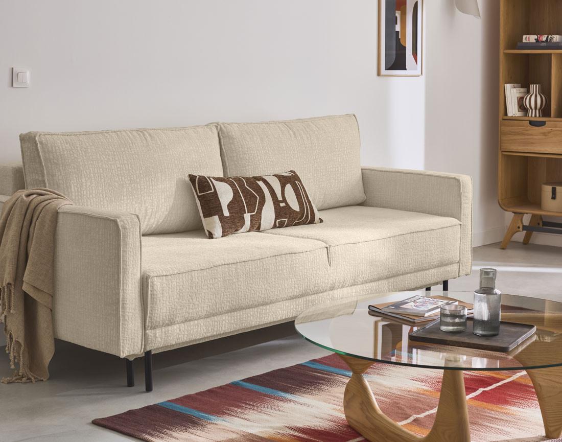Le canapé droit Charlie vous fait profiter de ses nombreux avantages pratiques et esthétiques, afin de sublimer votre intérieur tout en vous facilitant le quotidien. Grâce à son garnissage en mousse et flocons de mousse, ce joli canapé vous offre une assise 3 places des plus confortables, parfaite pour vos soirées cinéma à la maison ou pour accueillir vos invités dans les meilleures dispositions. Équipé d'un coffre de rangement astucieusement dissimulé, le canapé Charlie vous permet de bénéficier d'un agréable gain de place au quotidien : rangez-y vos livres ou jeux de société, vos plaids et coussins décoratifs, à votre guise. De plus, le canapé Charlie vous fait profiter de sa fonction convertible d'appoint très pratique : offrez à vos invités d'un soir un couchage confortable aux dimensions généreuses !