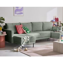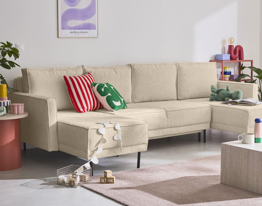 Avec ses 7 places assises et son design panoramique, le modèle Charlie deviendra rapidement la place préférée de toute votre petite famille. Une création soignée et élégante, parfaite pour vous permettre d'accueillir vos convives en tout confort, grâce à ses coussins de dossier moelleux et son assise agréable soutenue par des ressorts plats. Conçu pour s'adapter à vos besoins, le canapé panoramique Charlie vous fait profiter de son coffre de rangement discret, idéal pour accueillir vos affaires personnelles : jeux de société, collection de DVD's, jeux vidéos, plaids et bouillottes. Selon vos préférences ! Il s'agit également d'un modèle convertible, qui peut se transformer en un lit d'appoint confortable, et en un tour de main. Vous offrirez ainsi à vos invités d'une nuit un couchage aux dimensions généreuses de 140x260 cm.