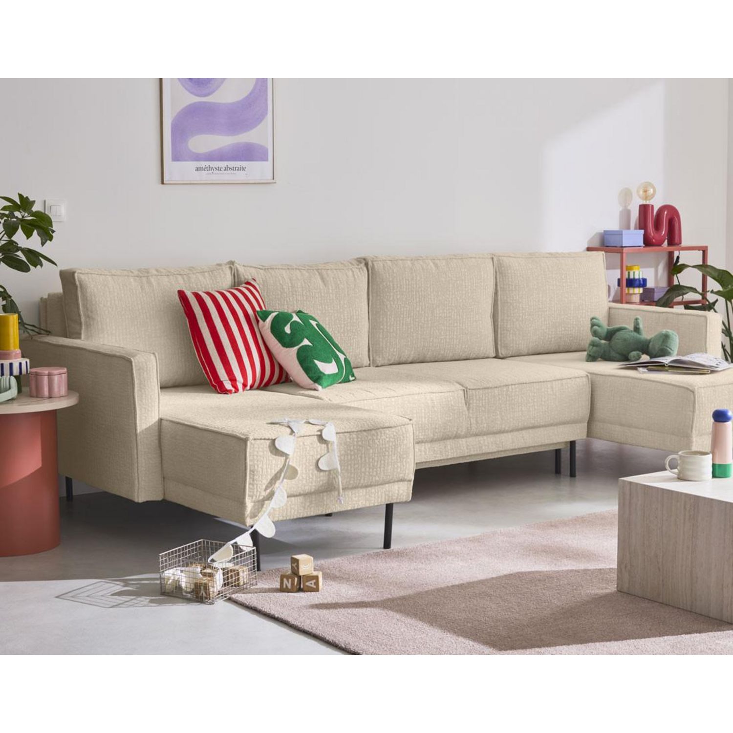 Charlie - canapé panoramique en u 7 places - convertible avec coffre - en tissu velours relief