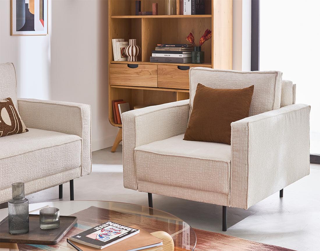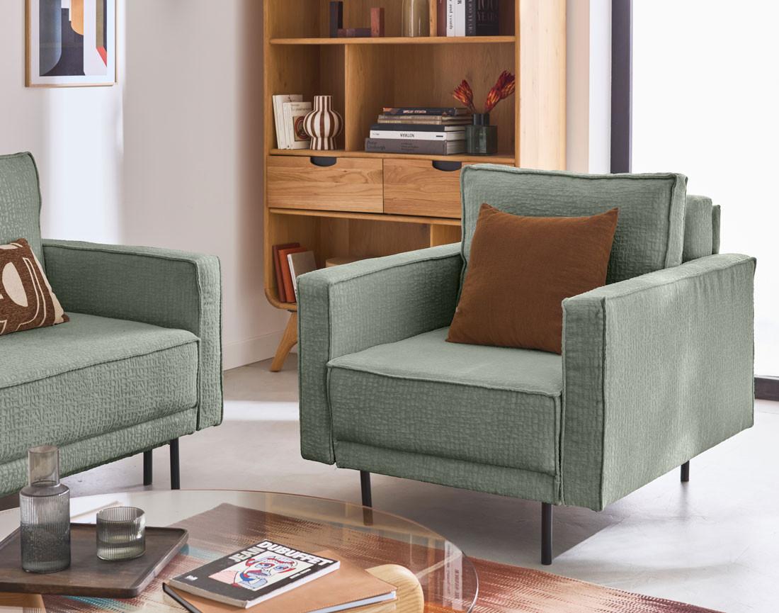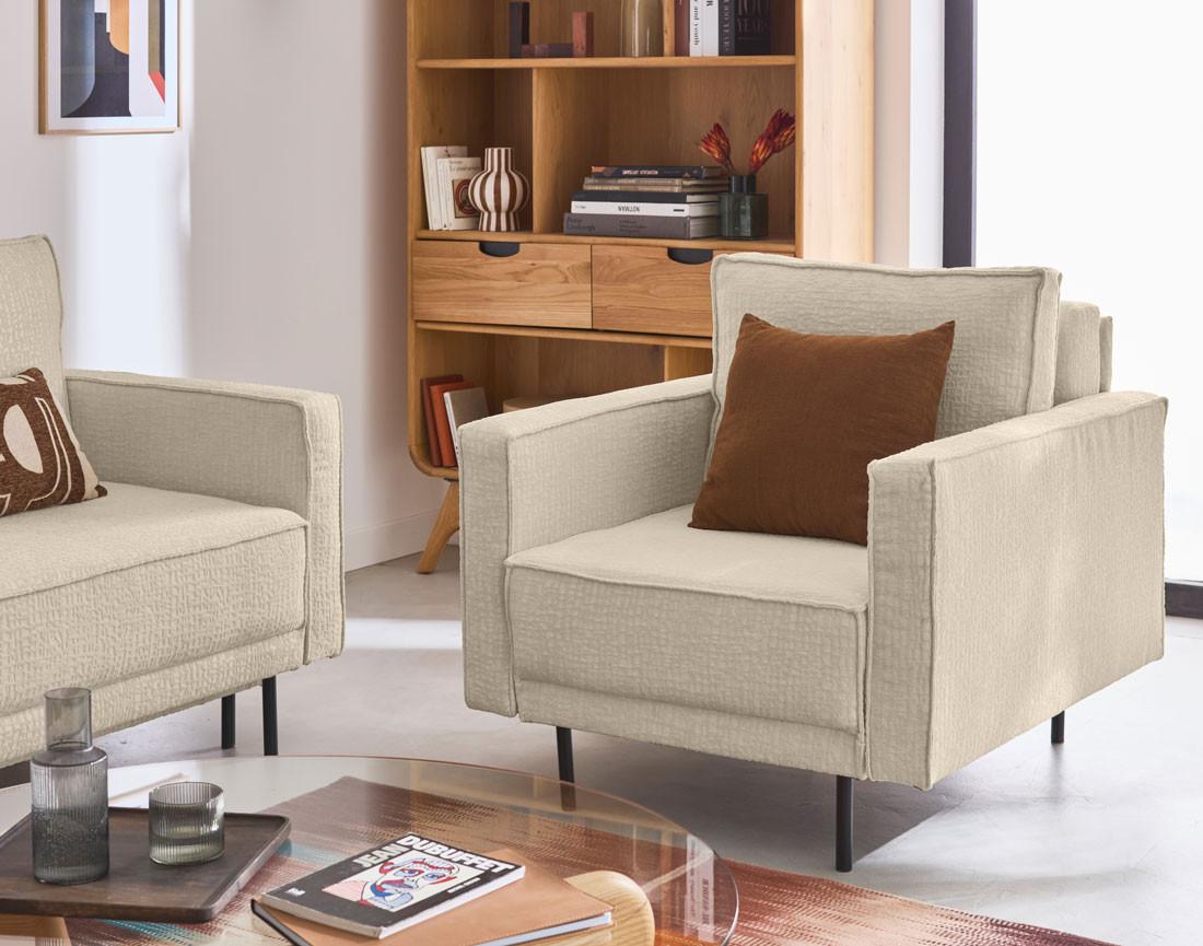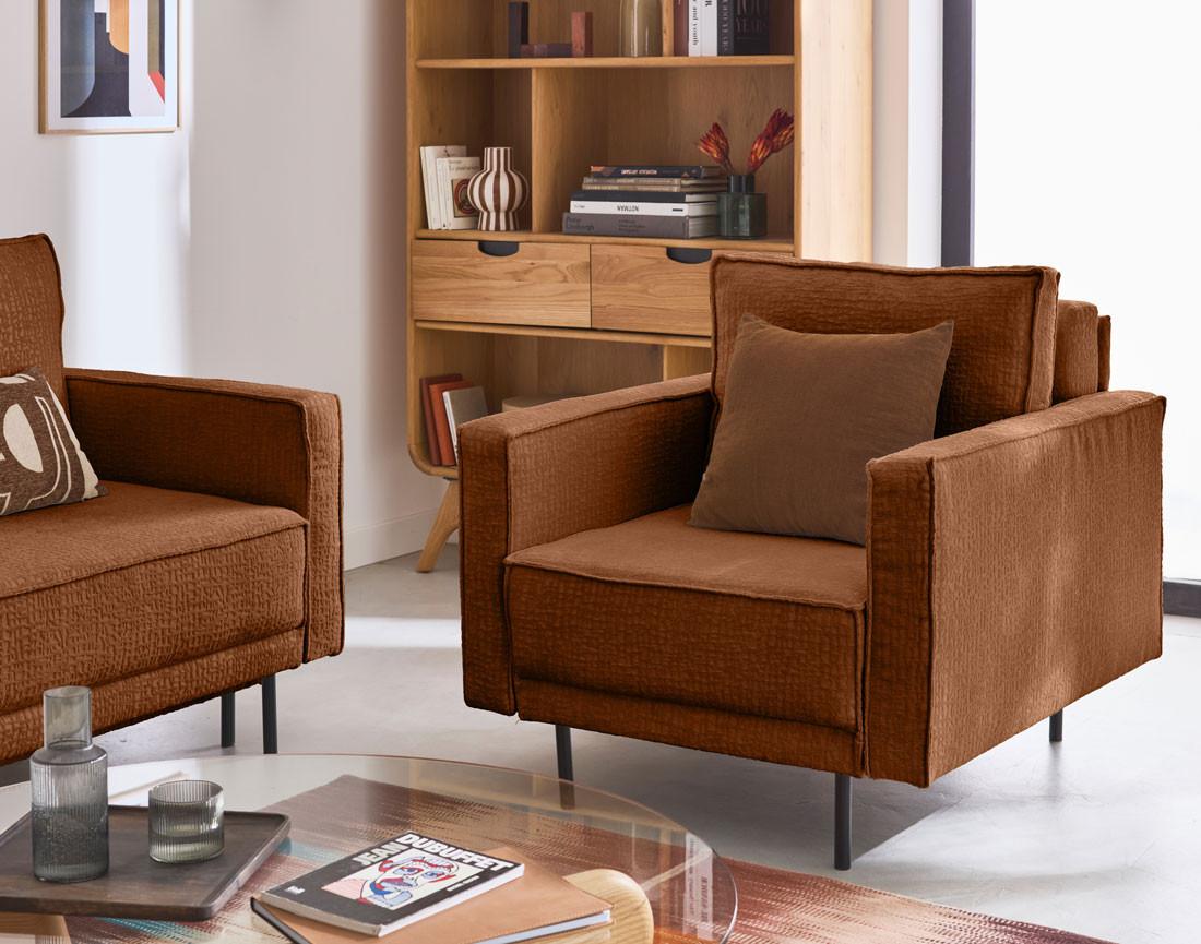 Découvrez Charlie, un élégant fauteuil au design épuré et moderne, parfait pour sublimer vos espaces de vie. À installer dans votre salon, dans une chambre ou même dans un bureau, son revêtement en tissu velours à reliefs, original et tendance, apportera de la sophistication à votre intérieur. Disponible en plusieurs coloris (beige, écru, taupe, gris, terracotta et vert), ce fauteuil s'intègre harmonieusement dans divers styles de décoration : contemporaine, zen ou encore japandi et bien plus encore.