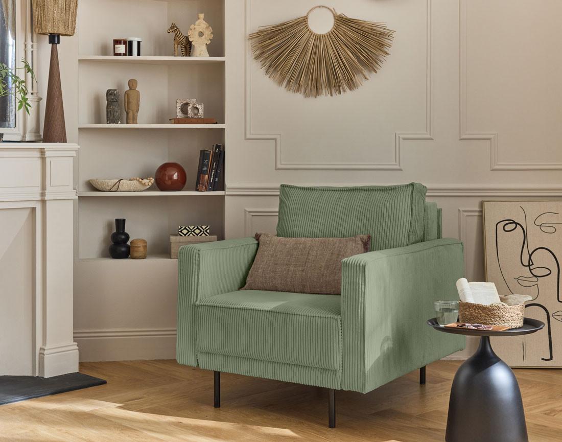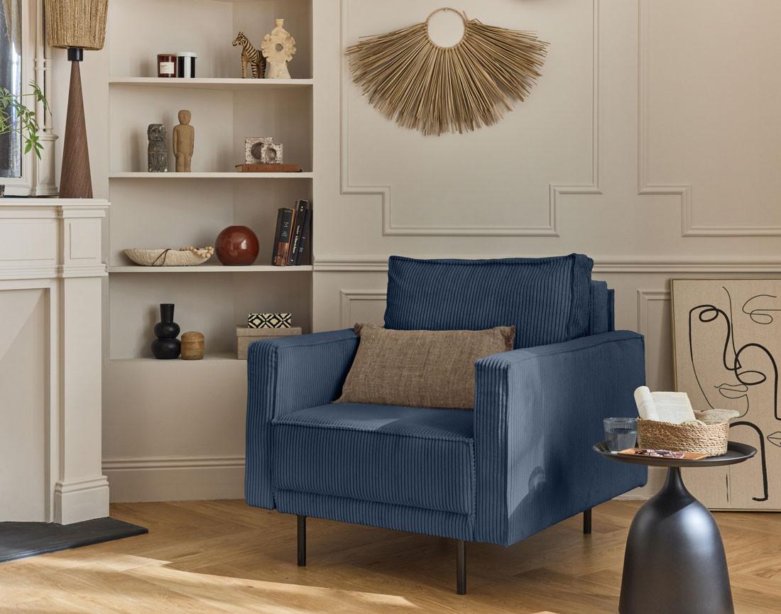 Charlie - fauteuil - pieds hauts - en velours côtelé