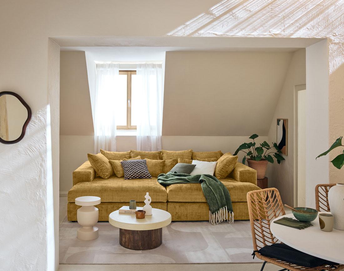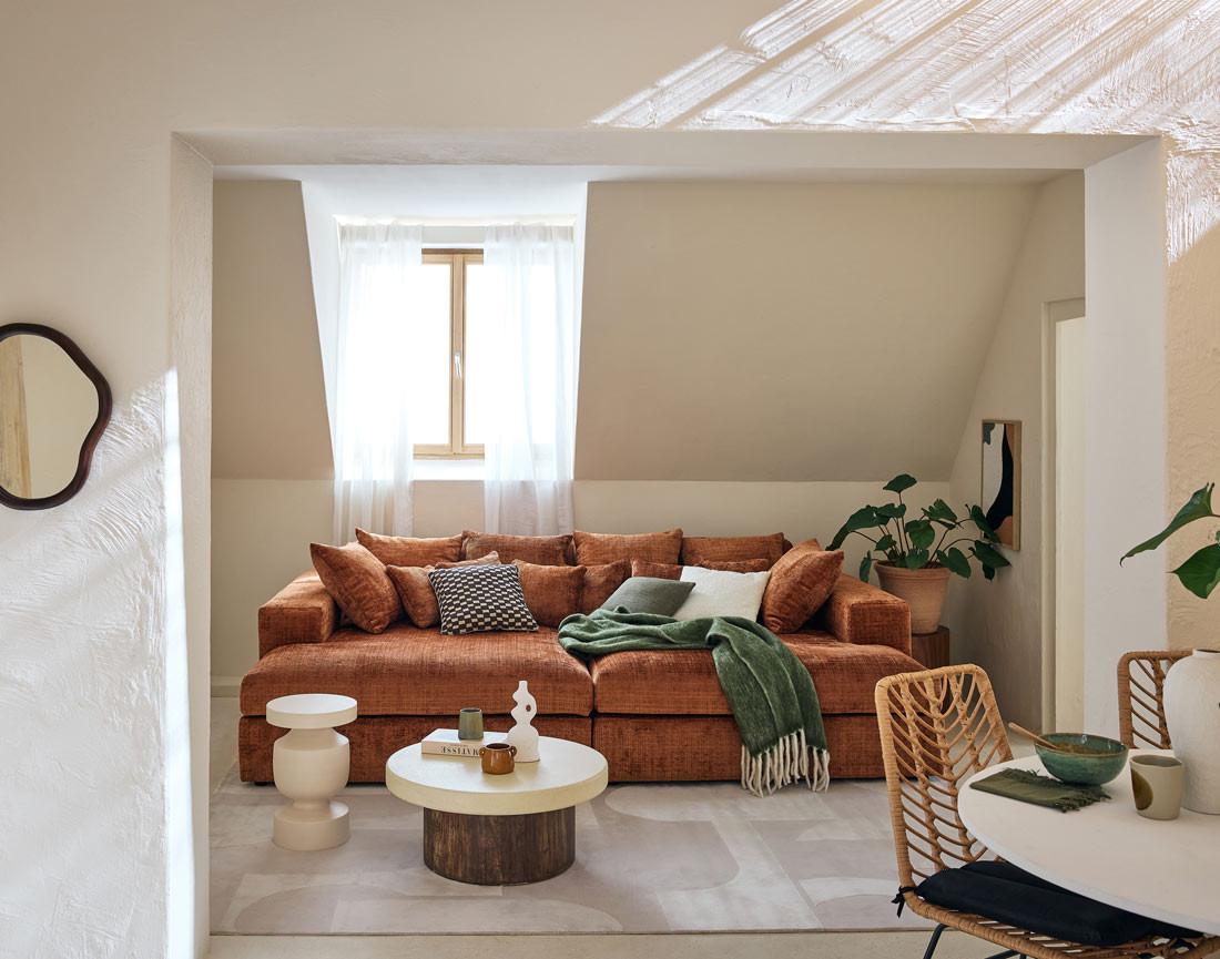 Confort exceptionnel et design polyvalent : découvrez le canapé Collins en velours texturé
