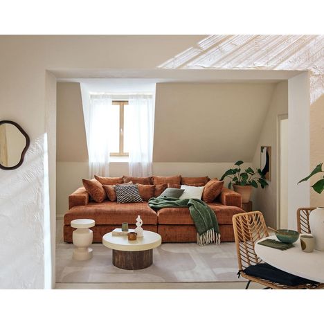 Offrez à votre salon ou à toute autre pièce de votre maison une touche de confort ultime et de style avec le canapé Collins en velours texturé. Conçu pour offrir une expérience de détente inégalée, ce canapé allie élégance et praticité. Son rembourrage généreux, ainsi que ses nombreux coussins, créent un espace douillet où chaque moment devient un plaisir de relaxation. L'assise profonde et accueillante du canapé Collins en velours texturé transforme chaque moment en un véritable cocon de bien-être. Plus qu'un simple meuble, ce canapé polyvalent peut aisément faire office d'un lit spacieux, idéal pour recevoir des invités ou profiter d'une pause reposante. Grâce à ses coussins décoratifs, vous pouvez ajuster l'aménagement à vos envies, personnalisant ainsi l'espace selon vos préférences pour un confort sur-mesure.