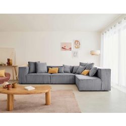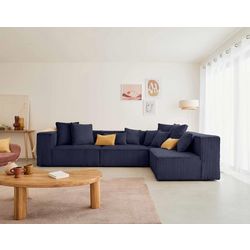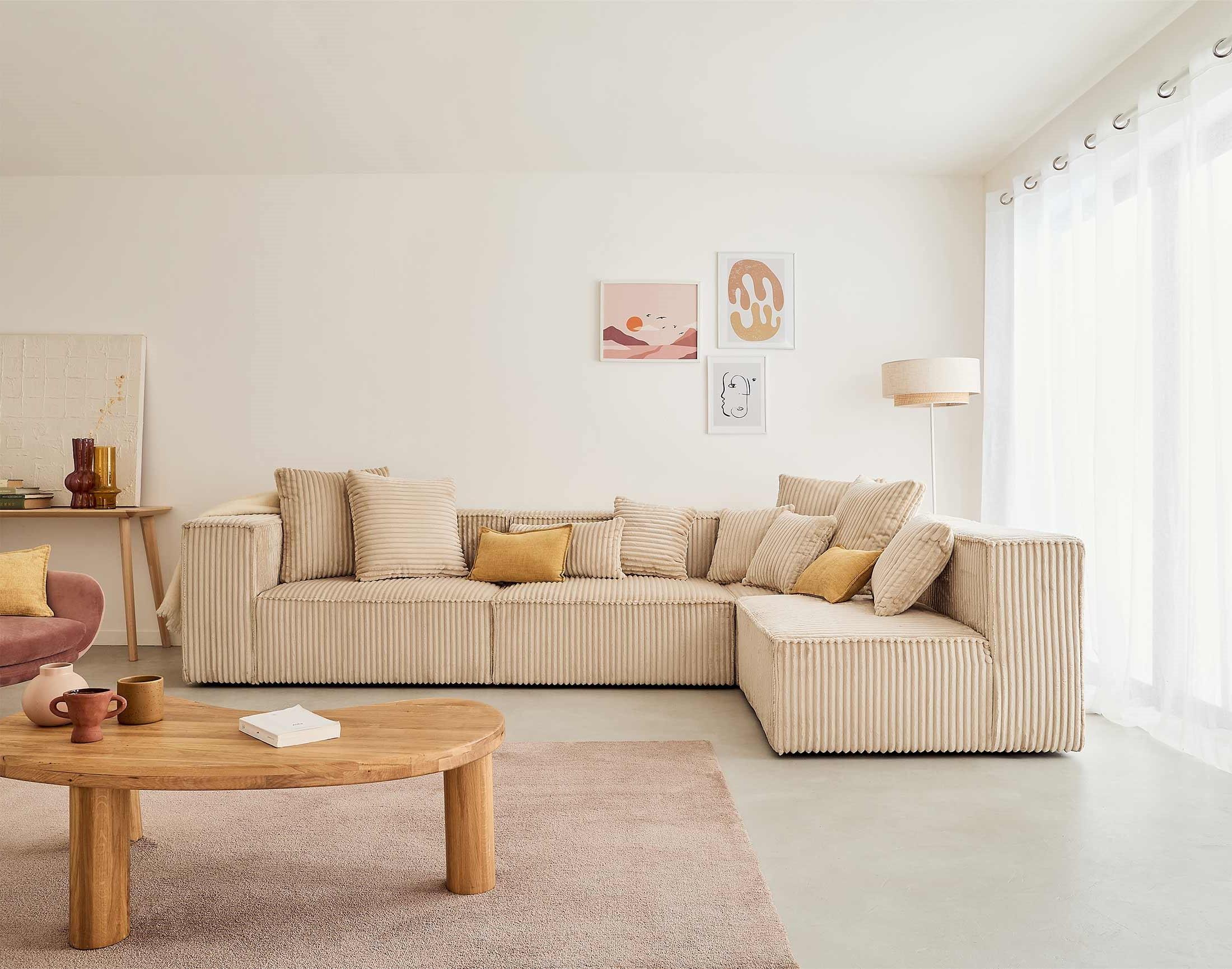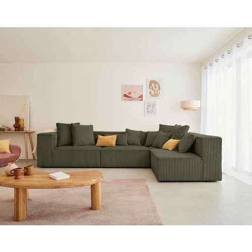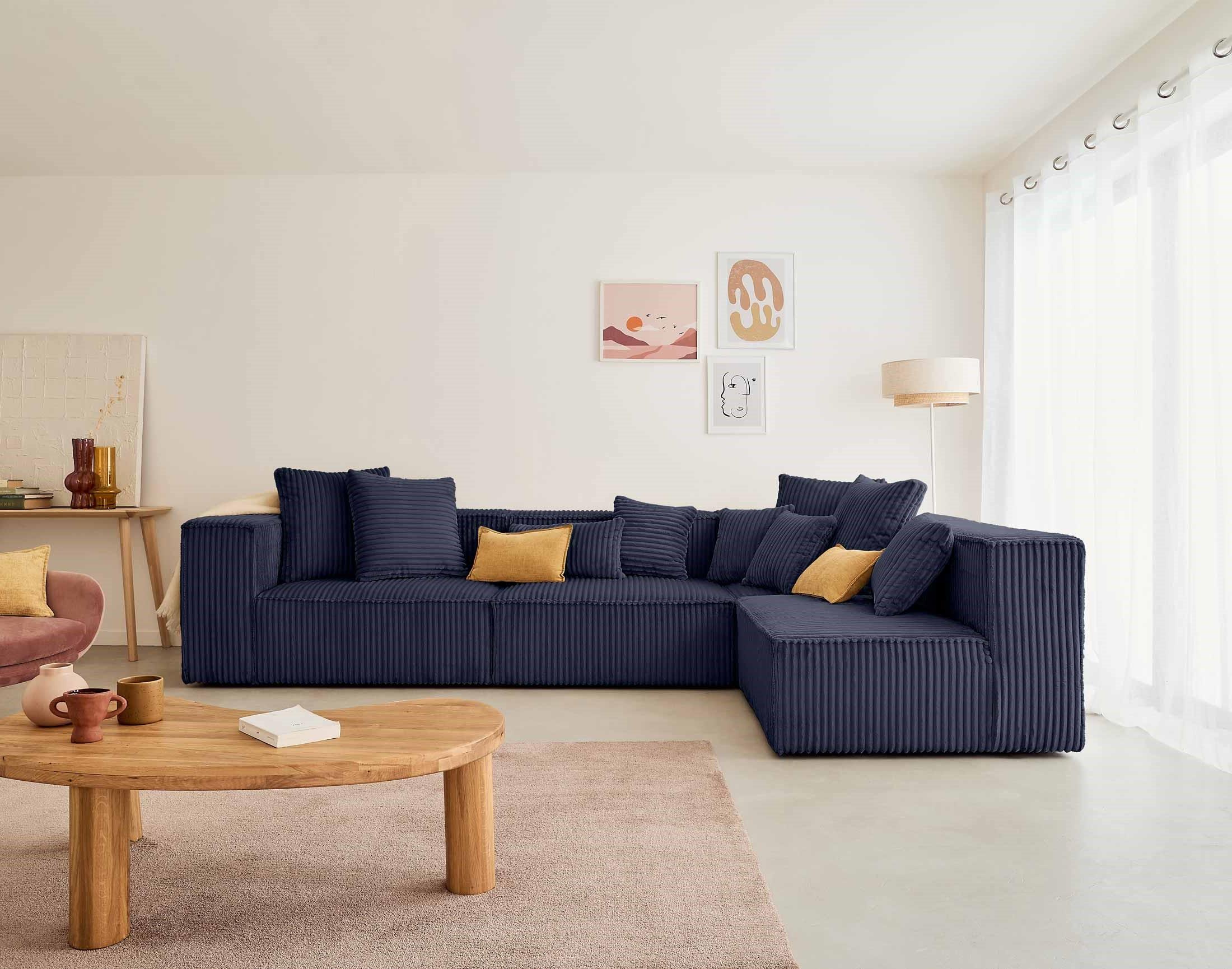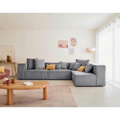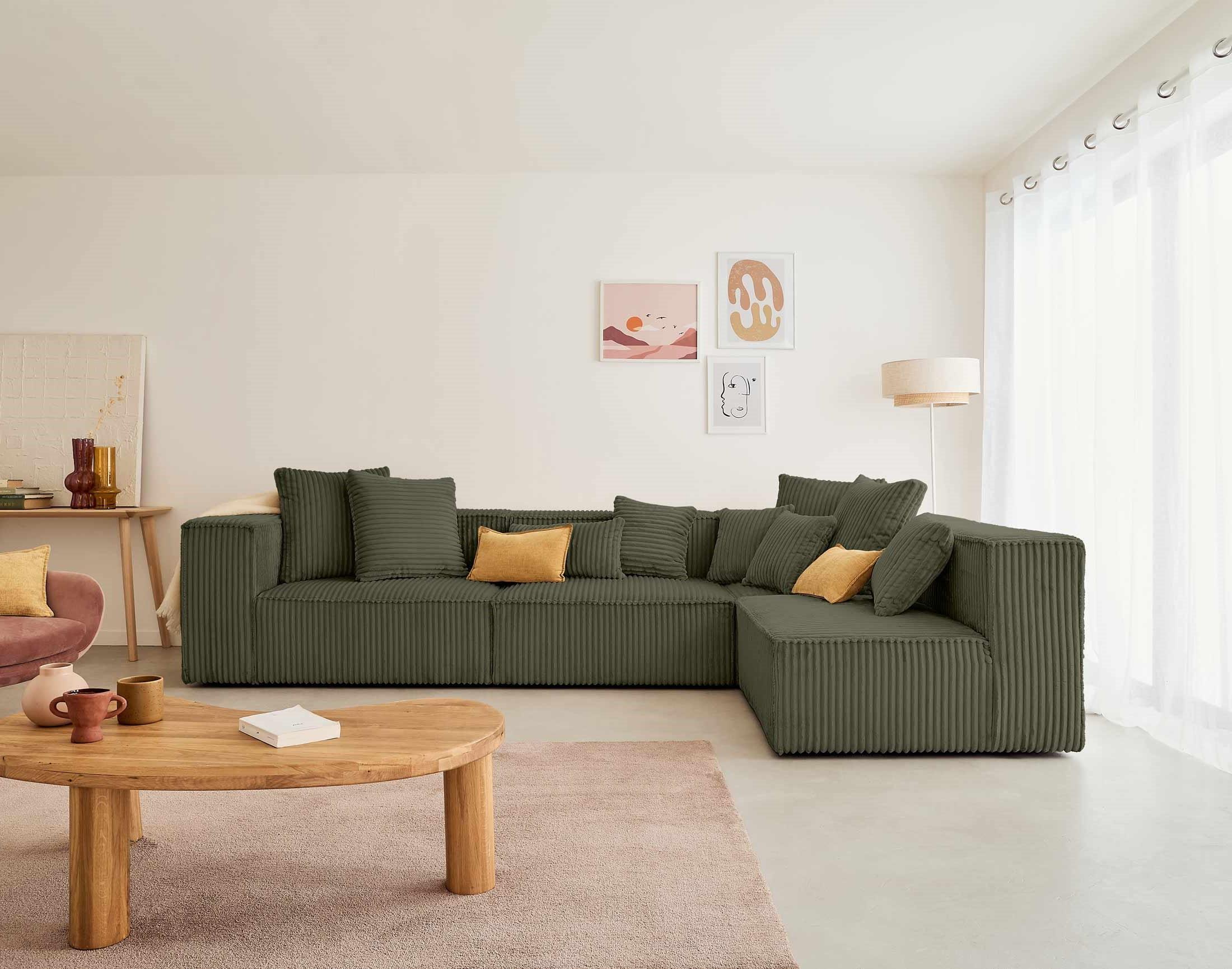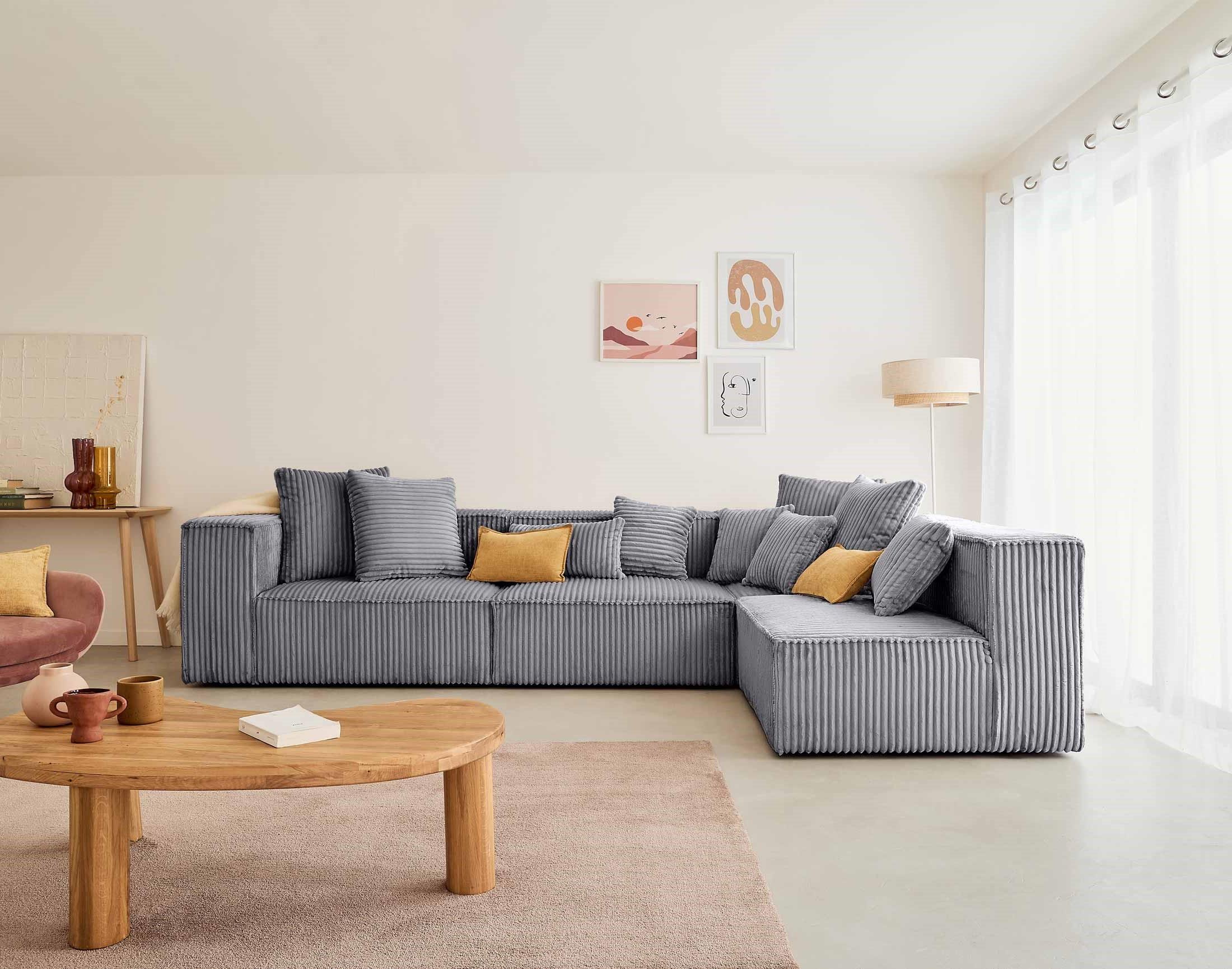 Colombine - canapé modulable d'angle droit - 5 places - en velours côtelé grosses côtes