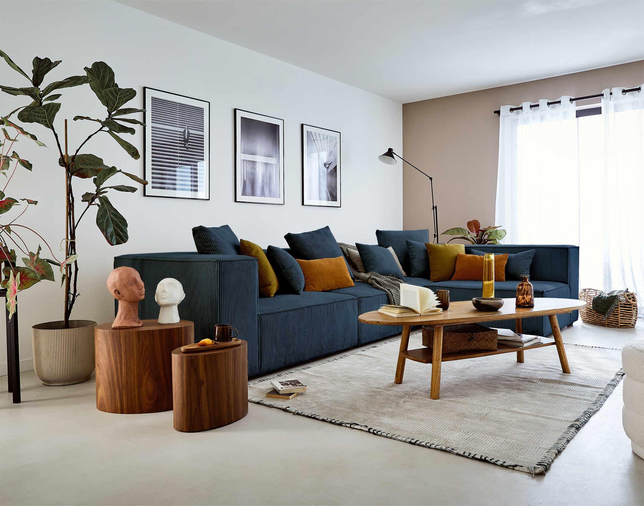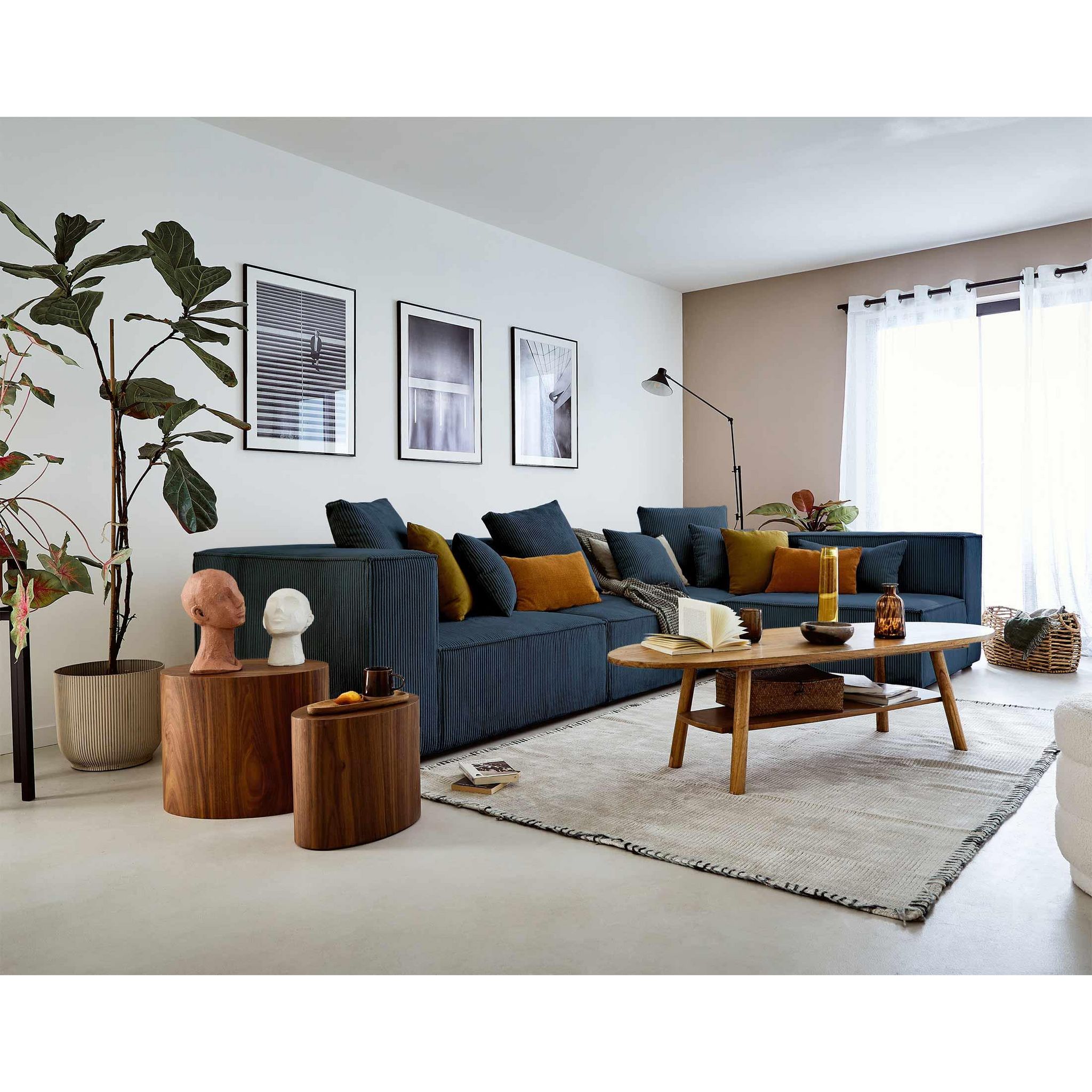 Colombine - canapé modulable d'angle droit - 6 places - en velours côtelé - bleu nuit