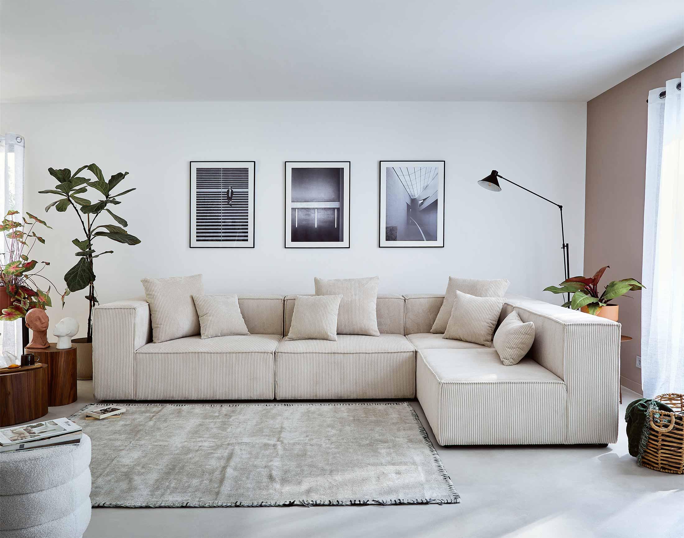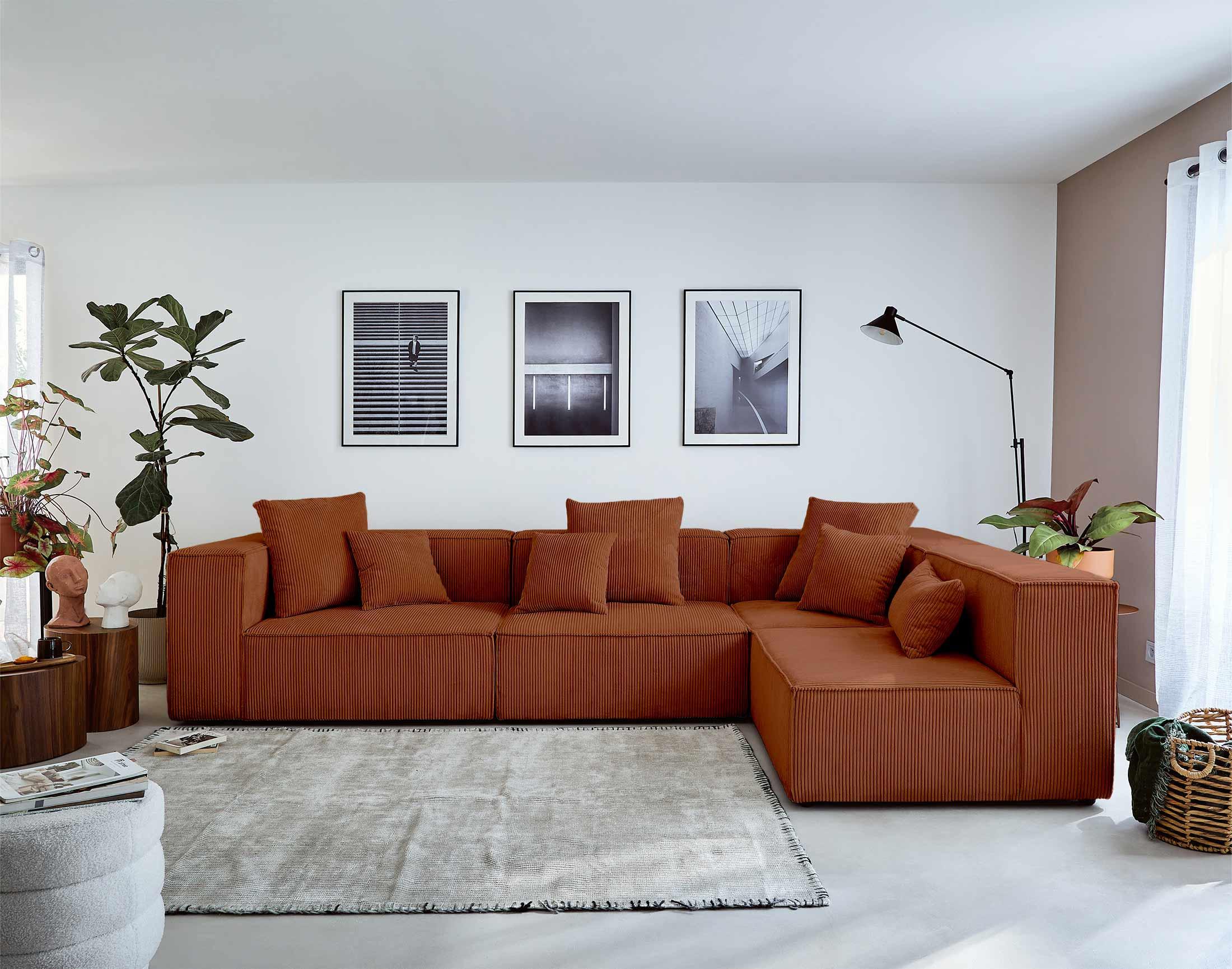 Colombine - canapé modulable d'angle droit - 6 places - en velours côtelé