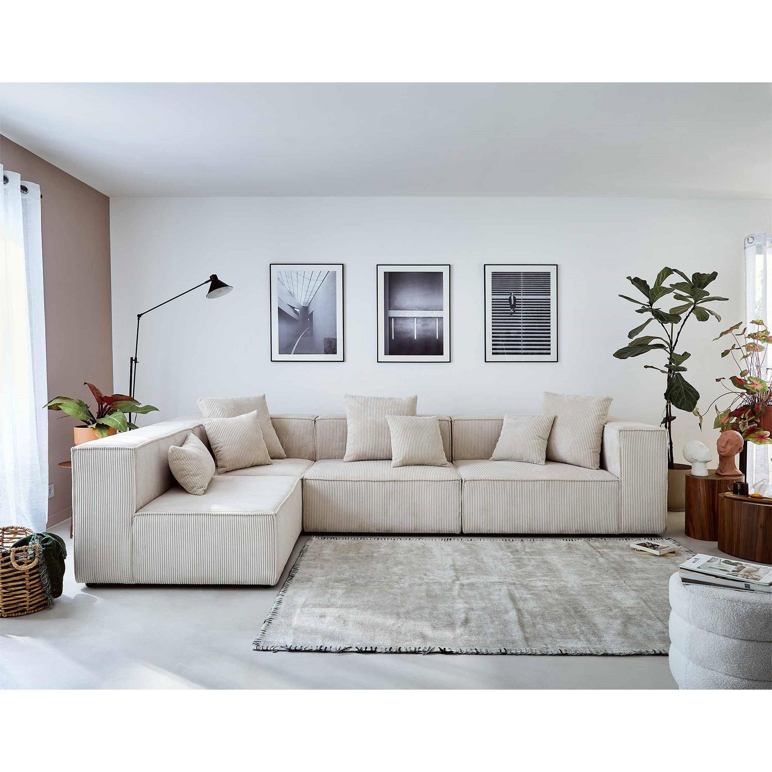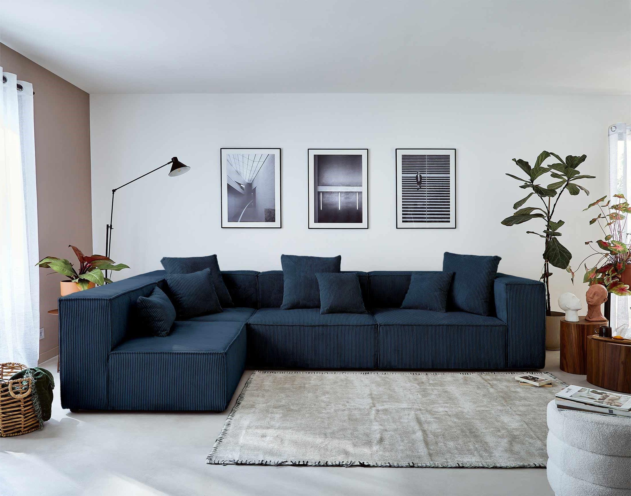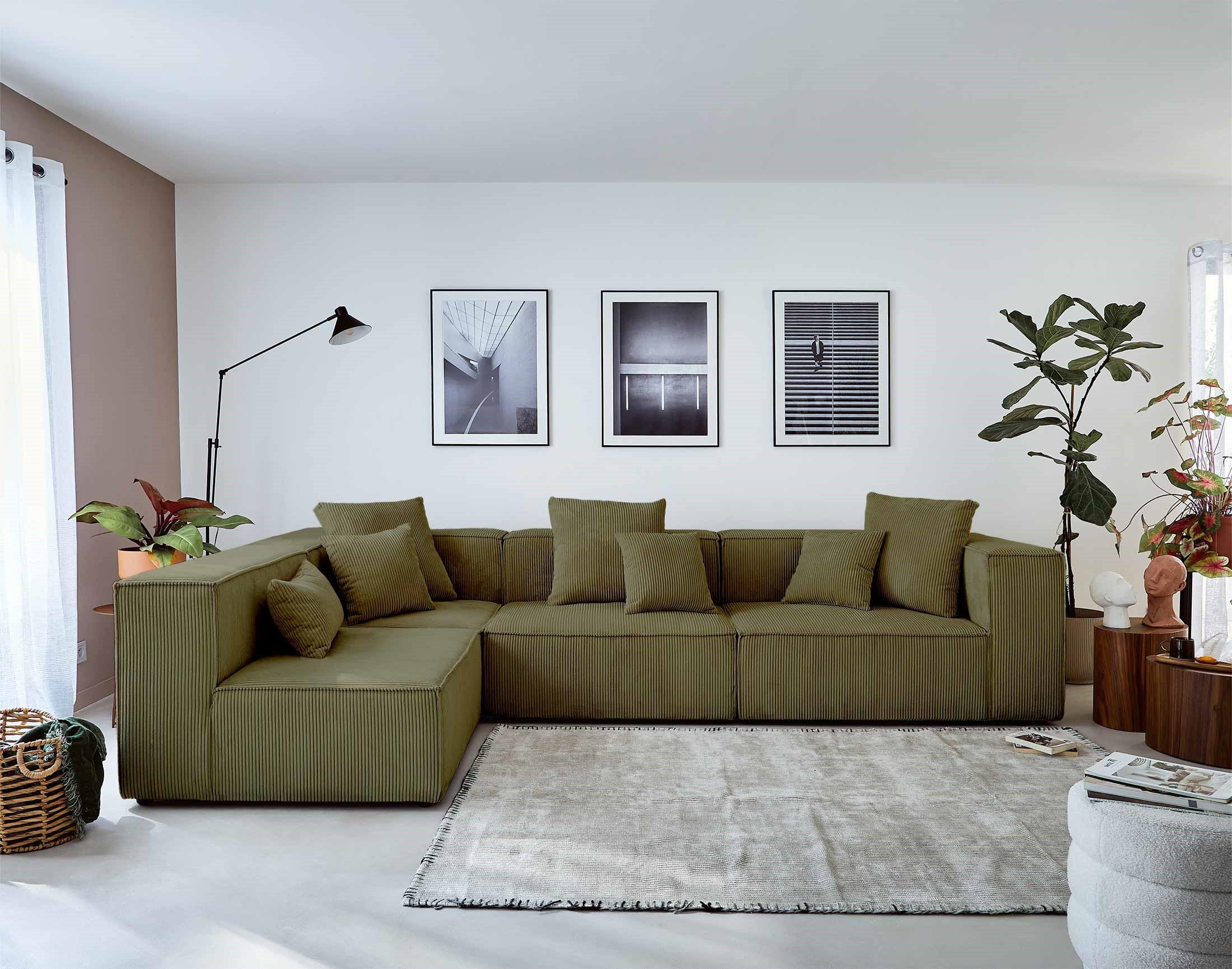 Colombine - canapé modulable d'angle gauche - 6 places - en velours côtelé