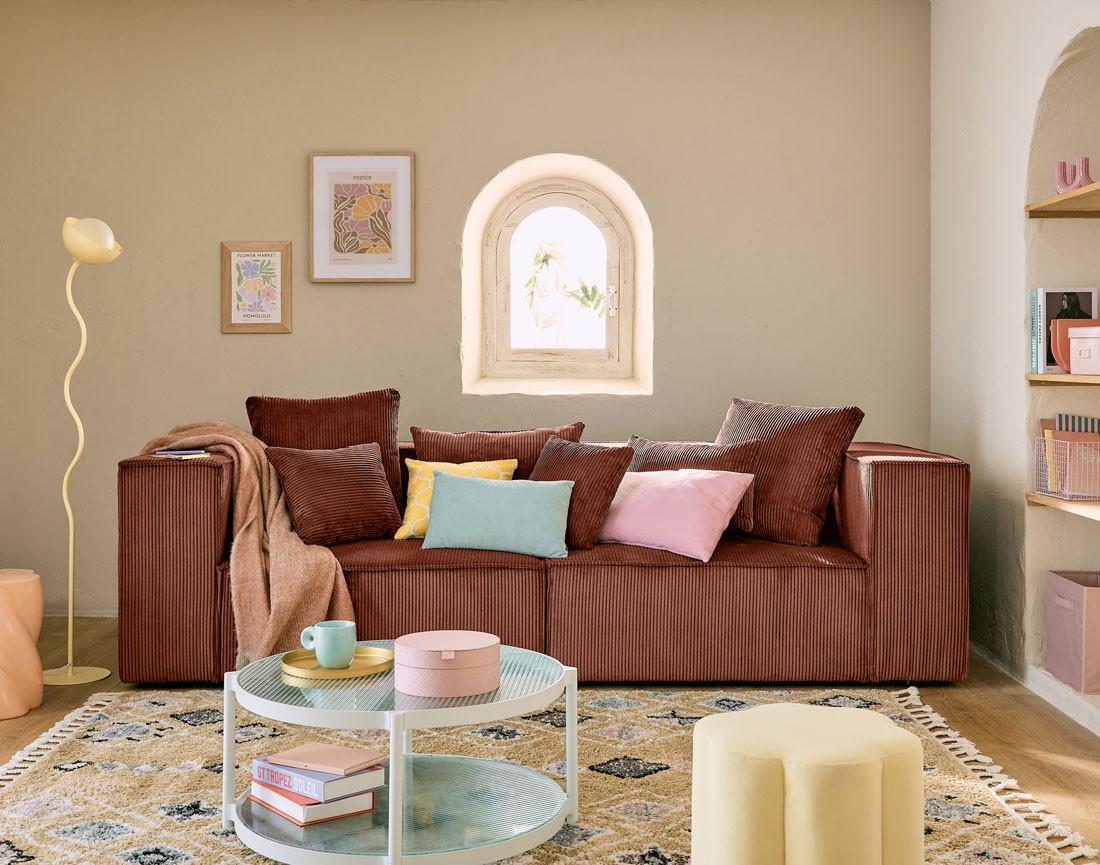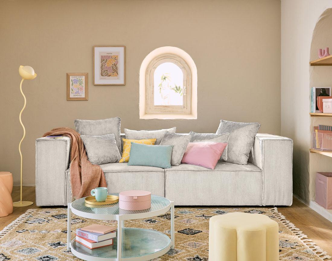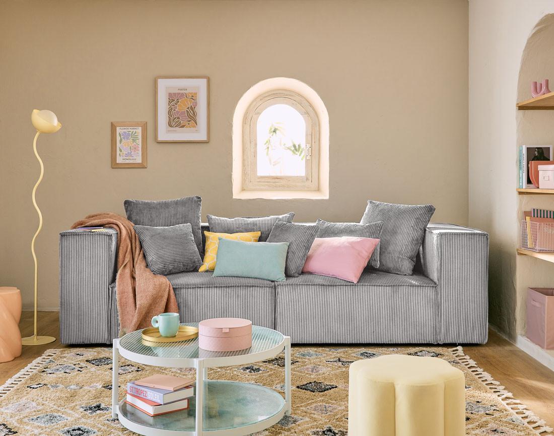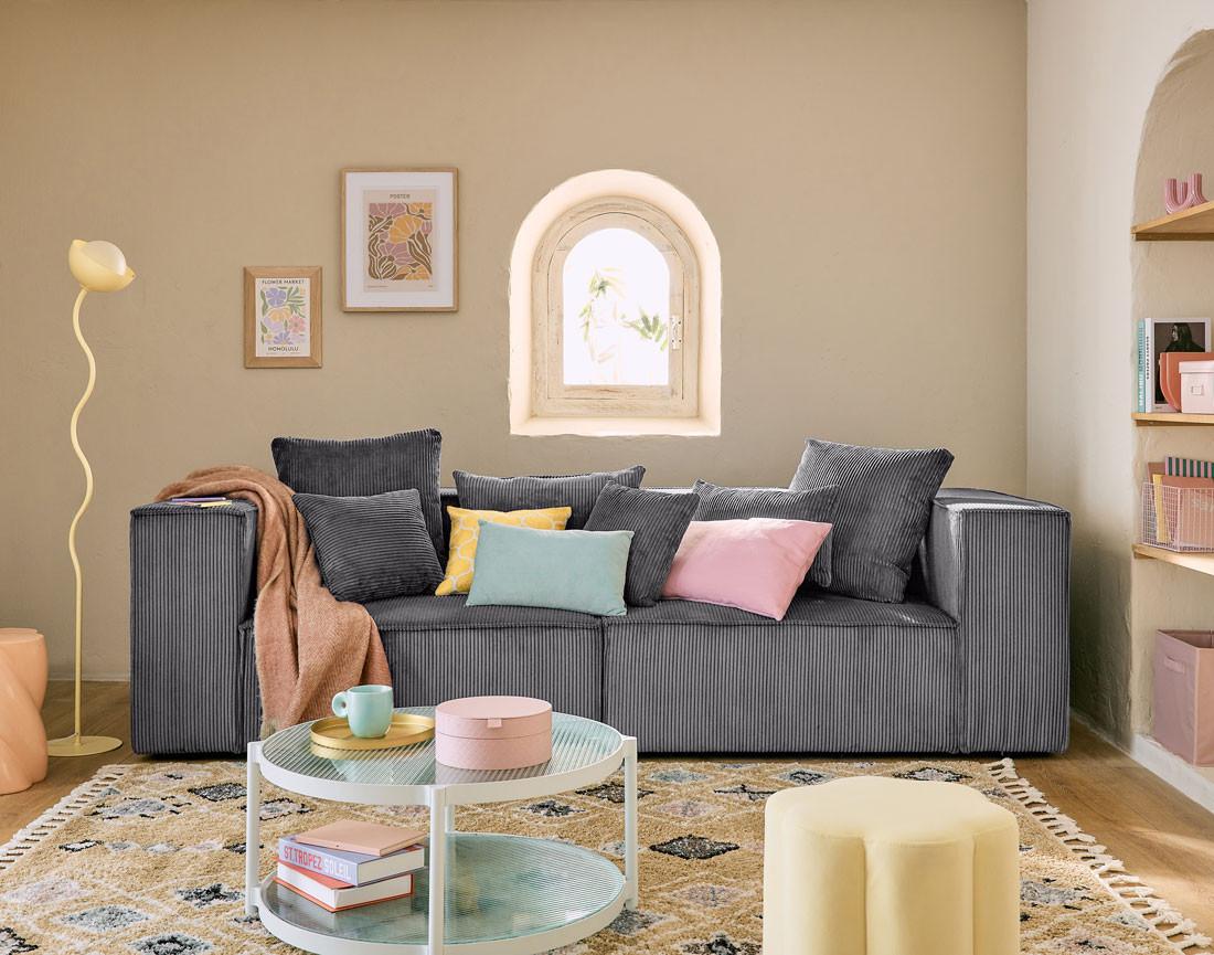 - Présentation de la collection : Agencez les modules comme bon vous semble et rendez votre salon unique grâce à la collection de canapés modulables Colombine ! Vous craquerez pour ses formes linéaires, son assise moelleuse et son revêtement en velours côtelé.