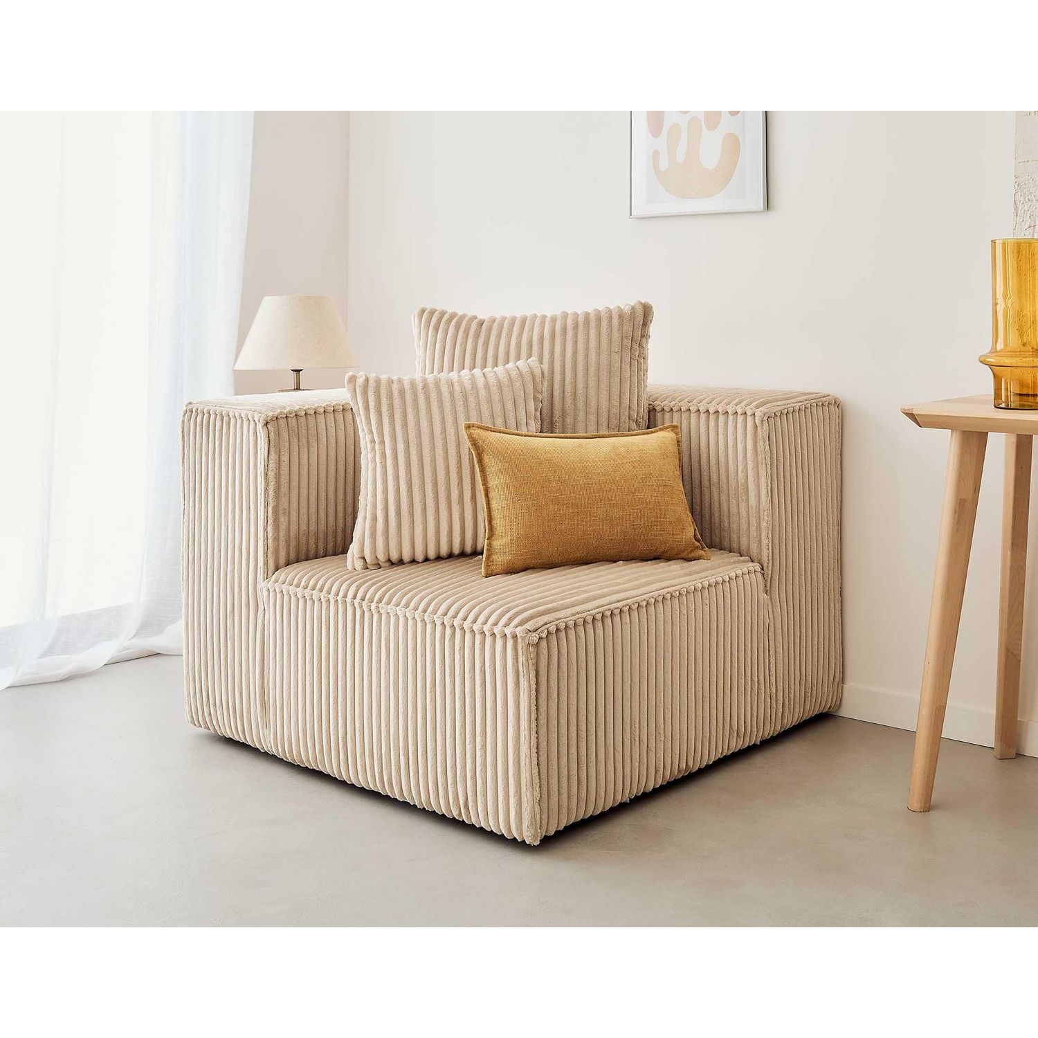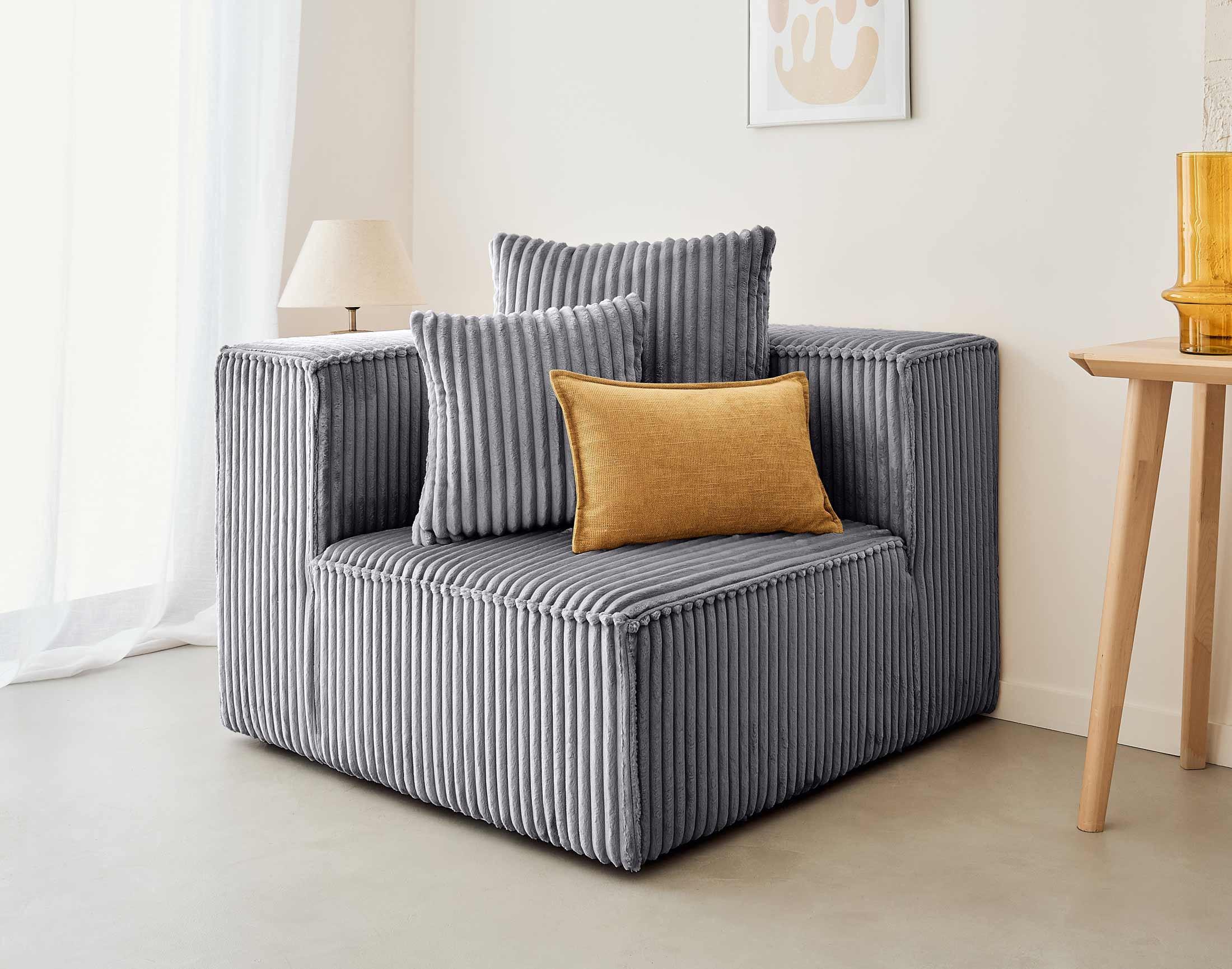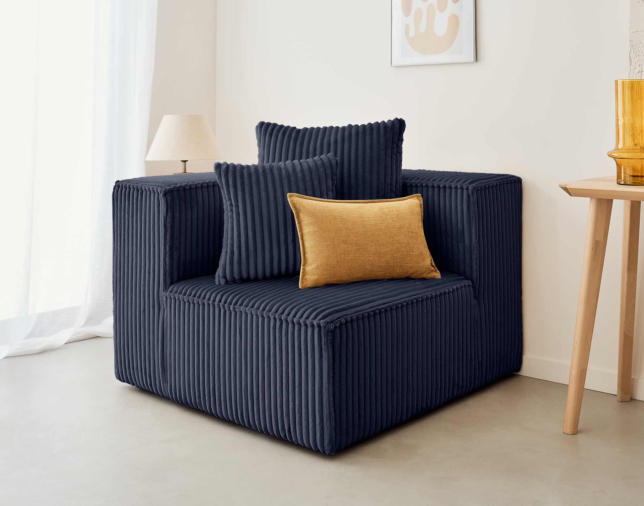 Colombine - module d'assise d'angle réversible - en velours côtelé grosses côtes