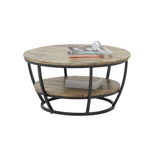 Si vous êtes à la recherche d'un meuble de salon à la fois beau et pratique, vous aimerez assurément cette table basse. Elle dispose d'un plateau rond en bois massif ainsi que des pieds en métal. En rappelant l'esprit des anciennes usines industrielles, cette table basse est un véritable must have! Elle s'harmonise parfaitement avec une déco moderne et empreinte d'originalité. Elle possède également des rangements pratiques pour garder un espace de vie toujours ordonné. En effet, les tables basses à deux niveaux s'avèrent être de véritables alliés au quotidien pour ranger quelques affaires. Nul doute qu'elle fera le bonheur des intérieurs subtilement décorés à l'aide d'une touche d'originalité.