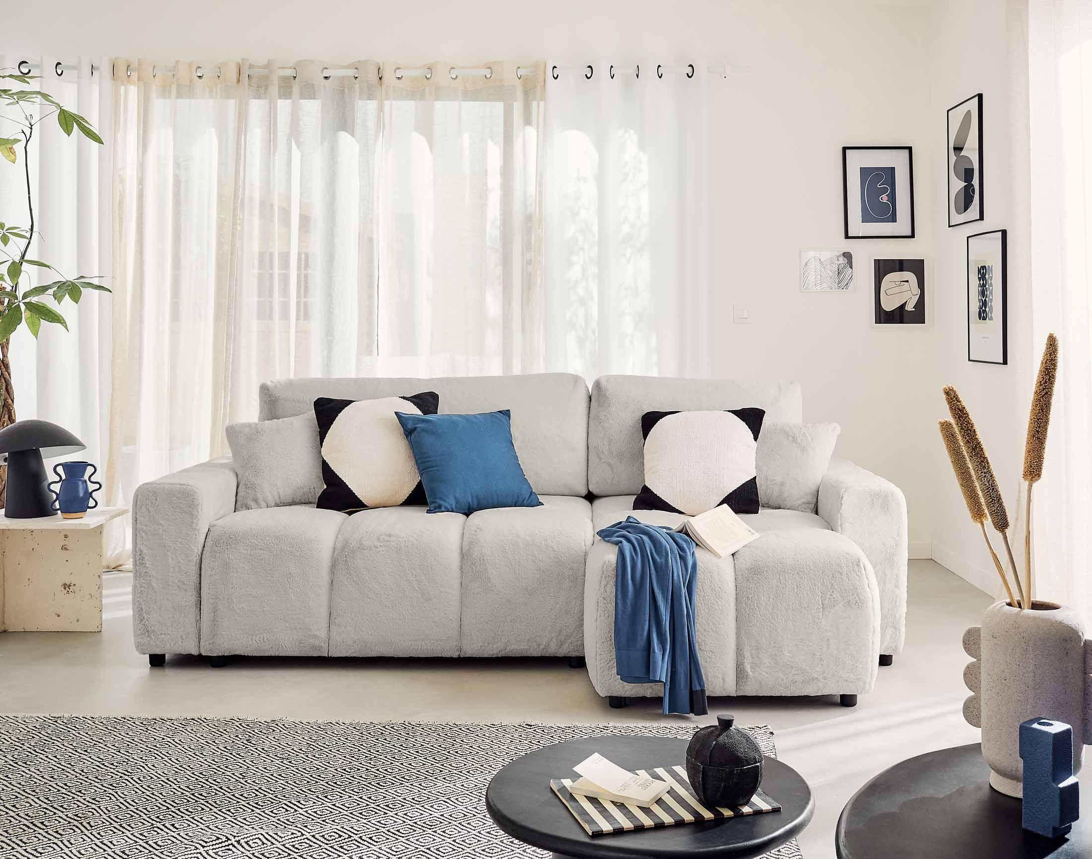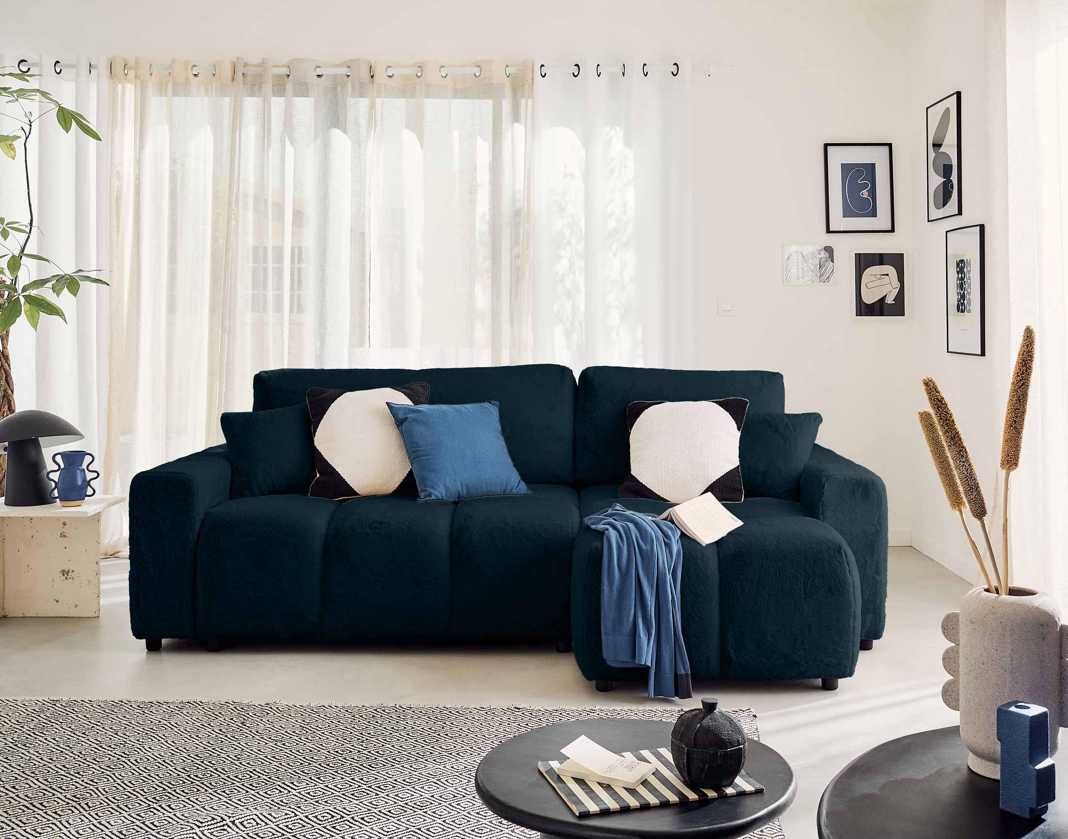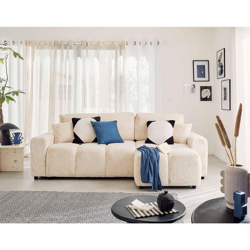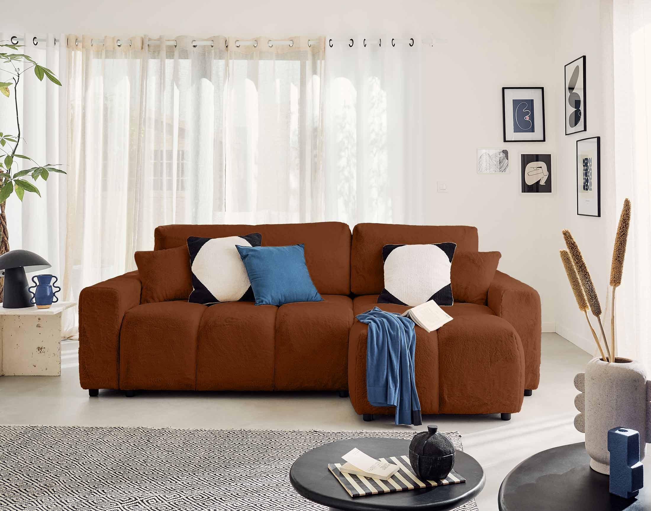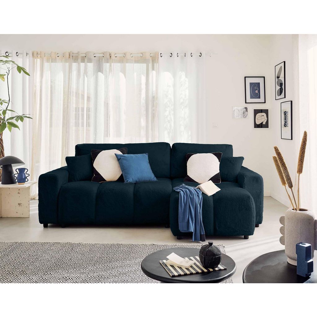 Crocus - canapé d'angle réversible - 4 places - convertible avec coffre - en fausse fourrure