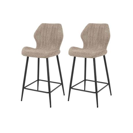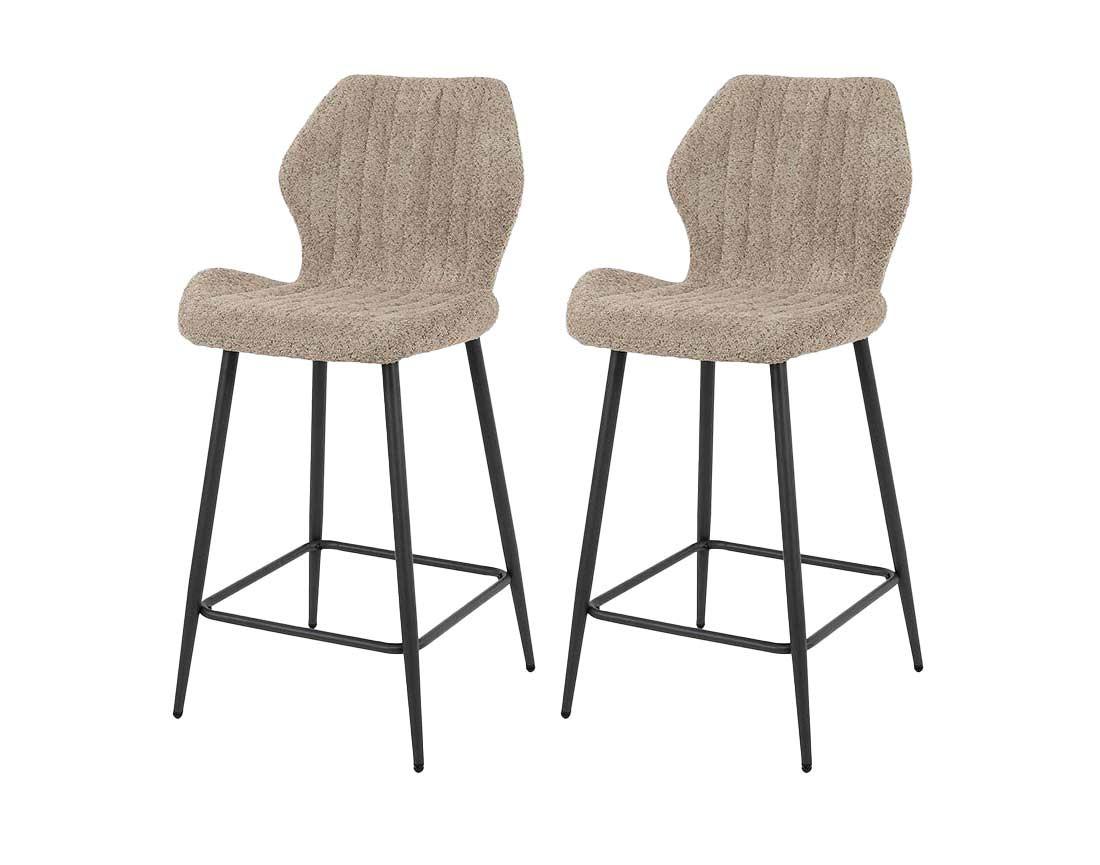 Dahi - lot de 2 tabourets de bar - support lombaire - en tissu bouclette sable