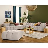 - Présentation de la collection : La collection Debbie en tissu texturé propose des canapés modulables élégants et flexibles, disponibles en 4, 5, et 7 places, ainsi qu'en version Big Sofa, pouf et modules séparés pour personnaliser votre espace avec style et confort
