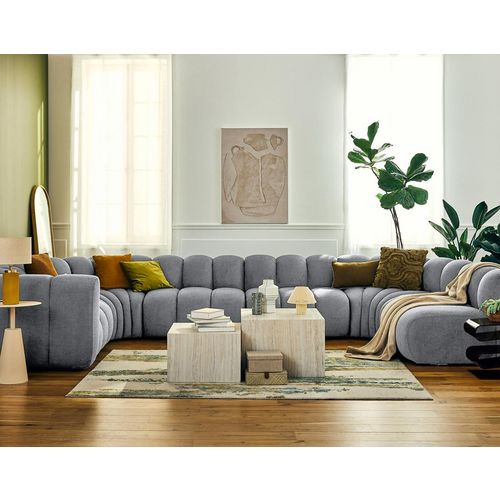 Debbie - canapé modulable panoramique d'angle droit 7 places en tissu texturé