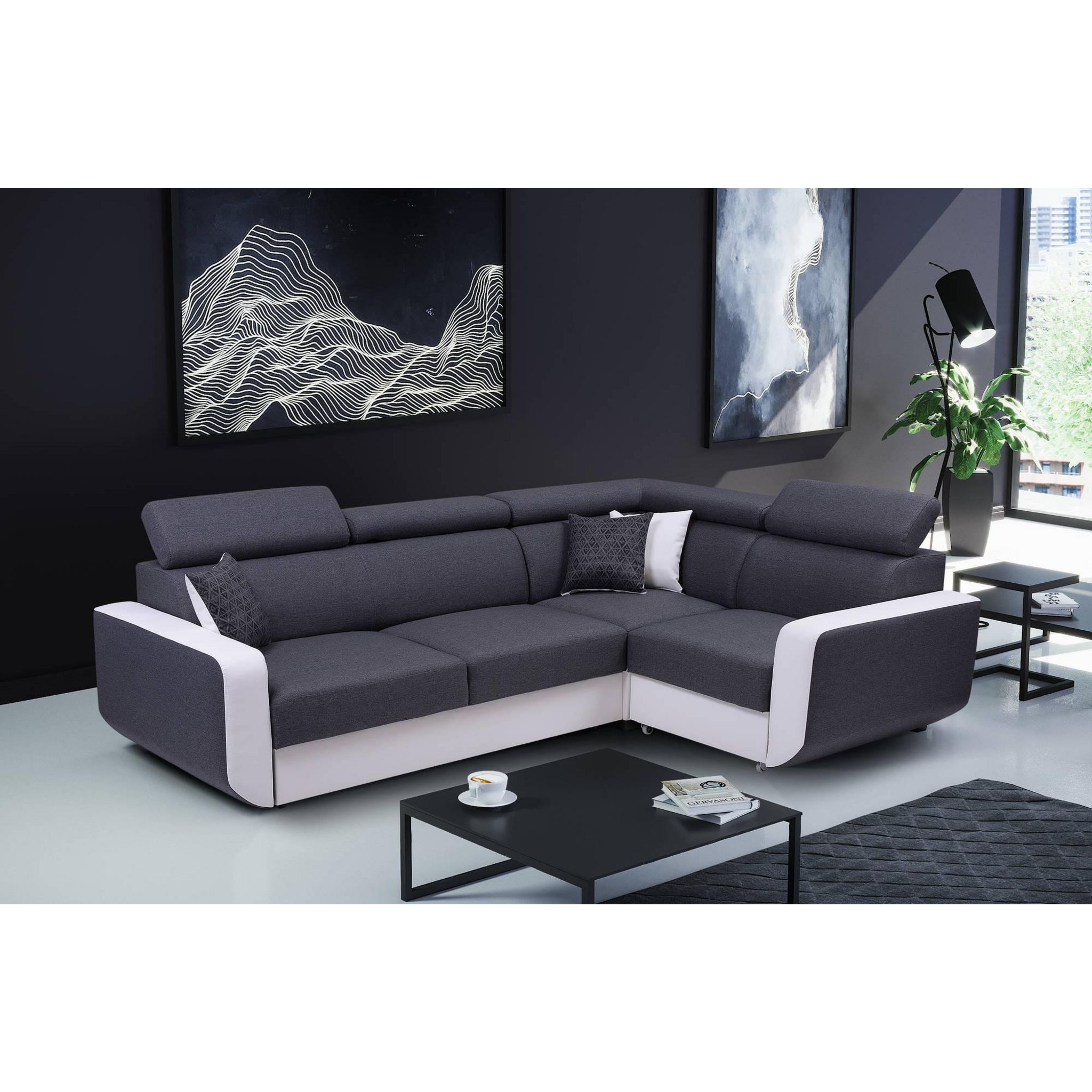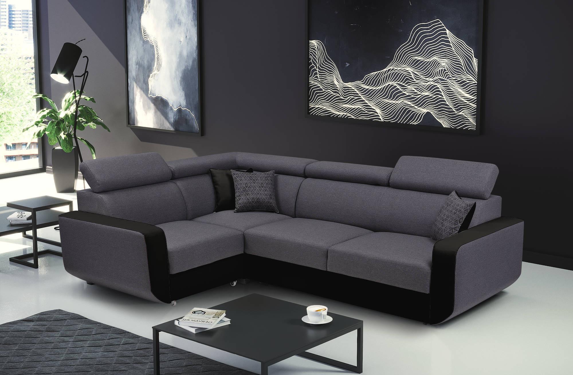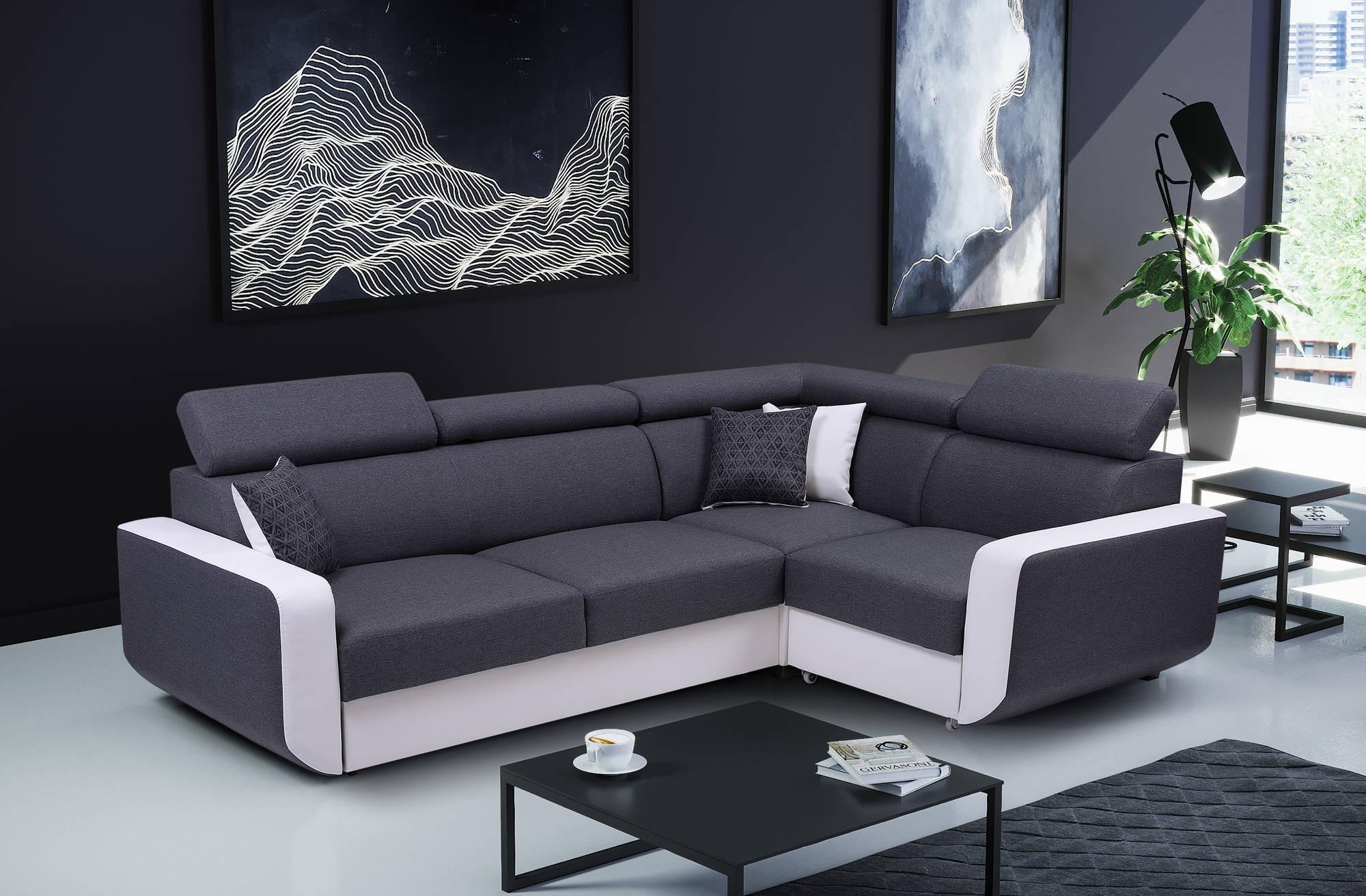 Dustin - canapé d'angle l réversible - 5 places - convertible avec coffre - têtieres réglables