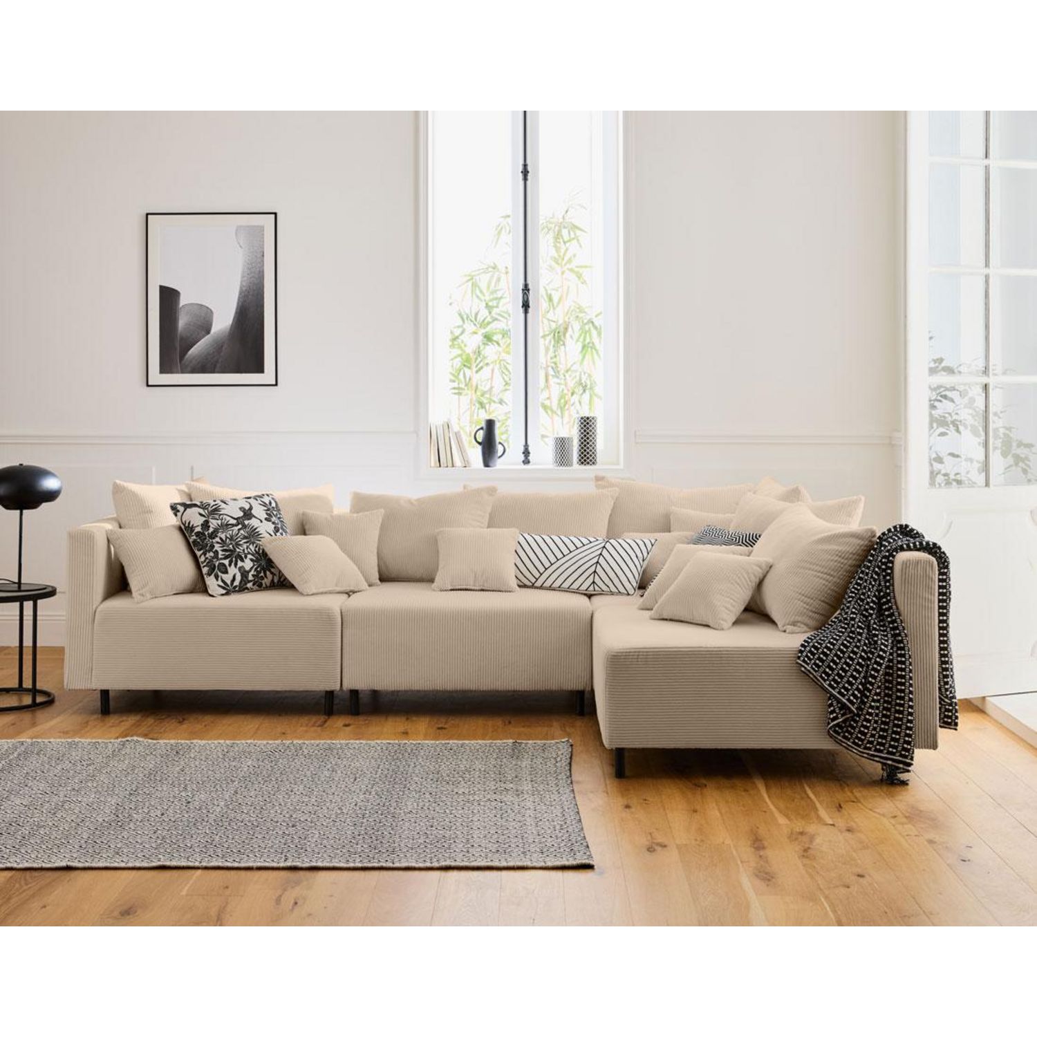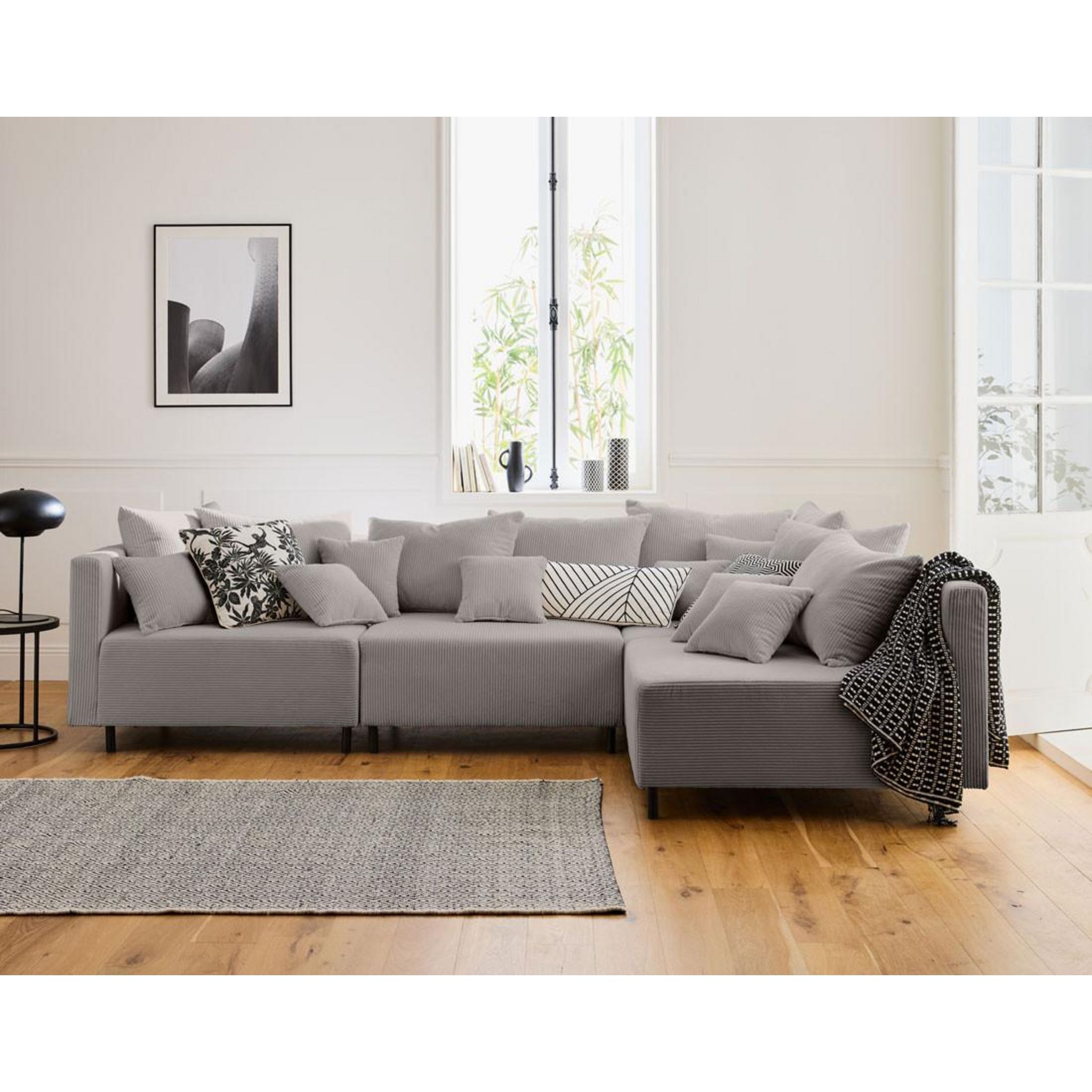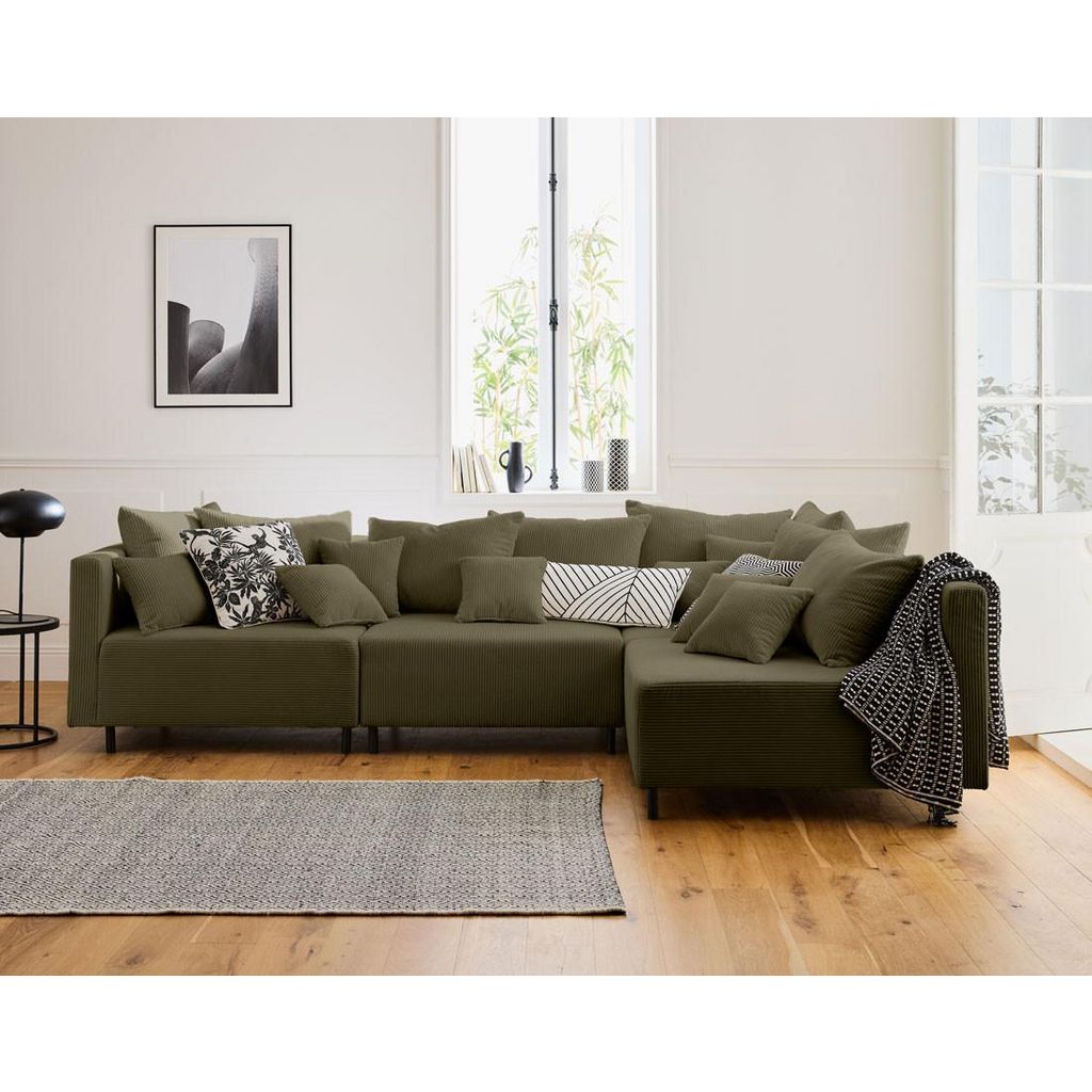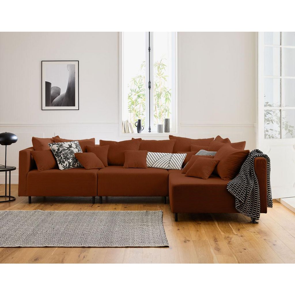 - Présentation de la collection : Laissez-vous séduire par la nouvelle collection Edinburg composée de canapés modulables, de modules et d'un pouf. Elle se démarque par son revêtement en velours côtelé, ses pieds hauts en métal et ses nombreux coussins.