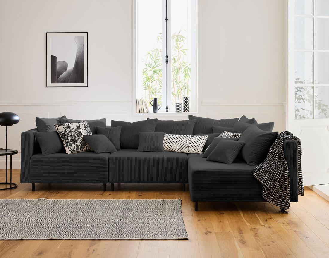 Edinburg - canapé modulable d'angle réversible 4 places - en velours côtelé