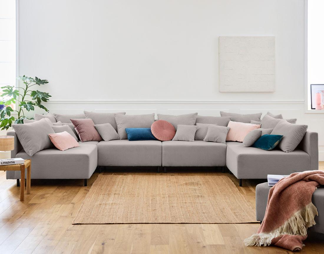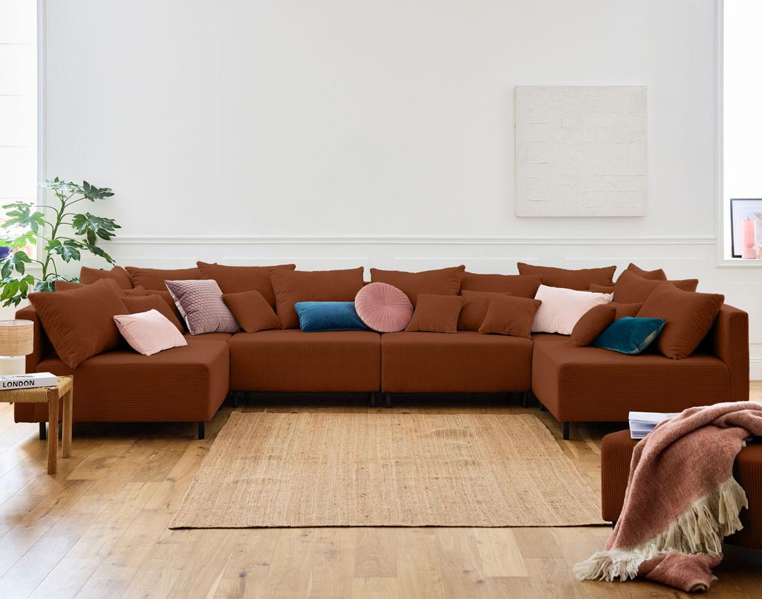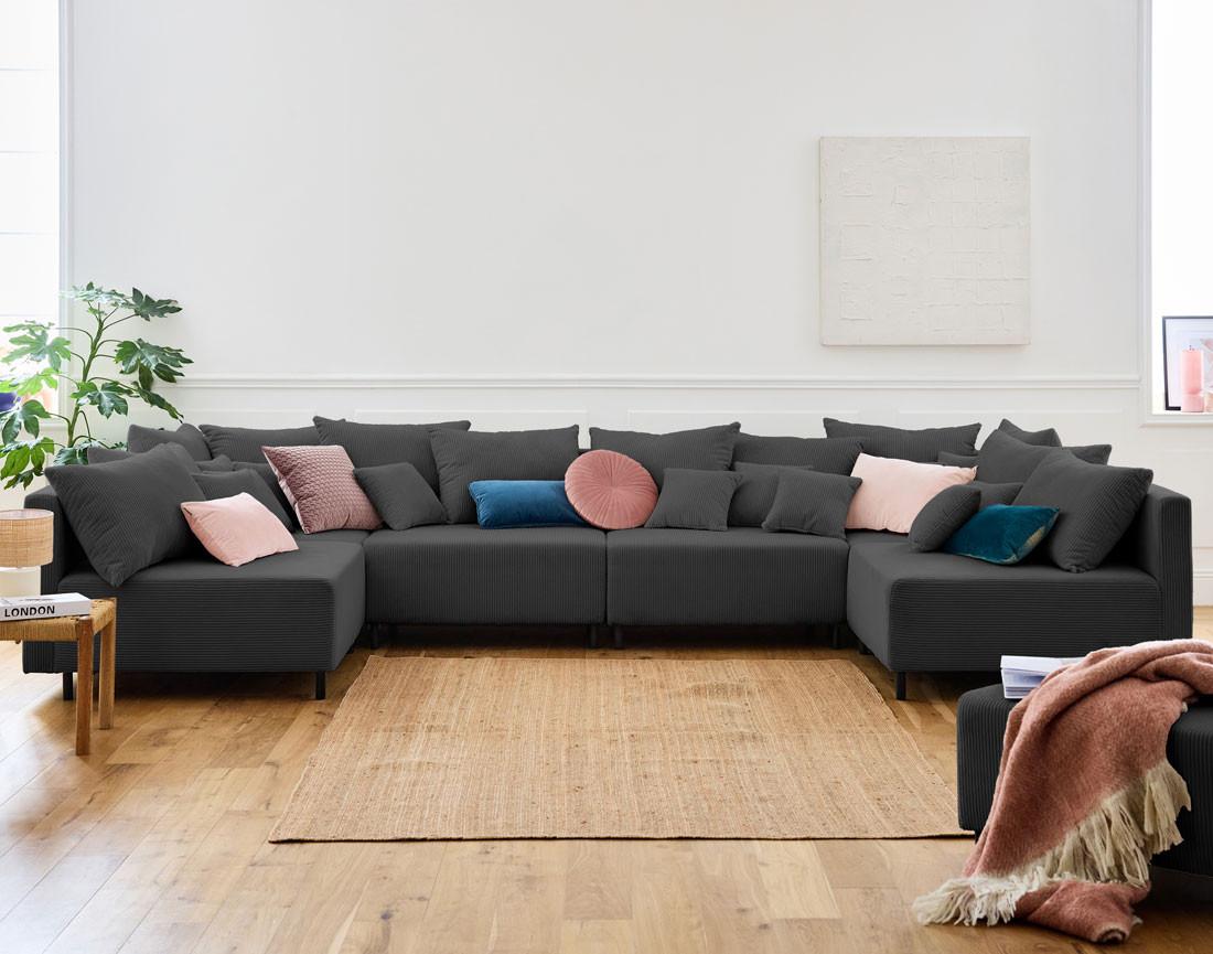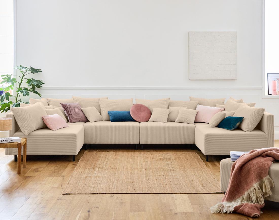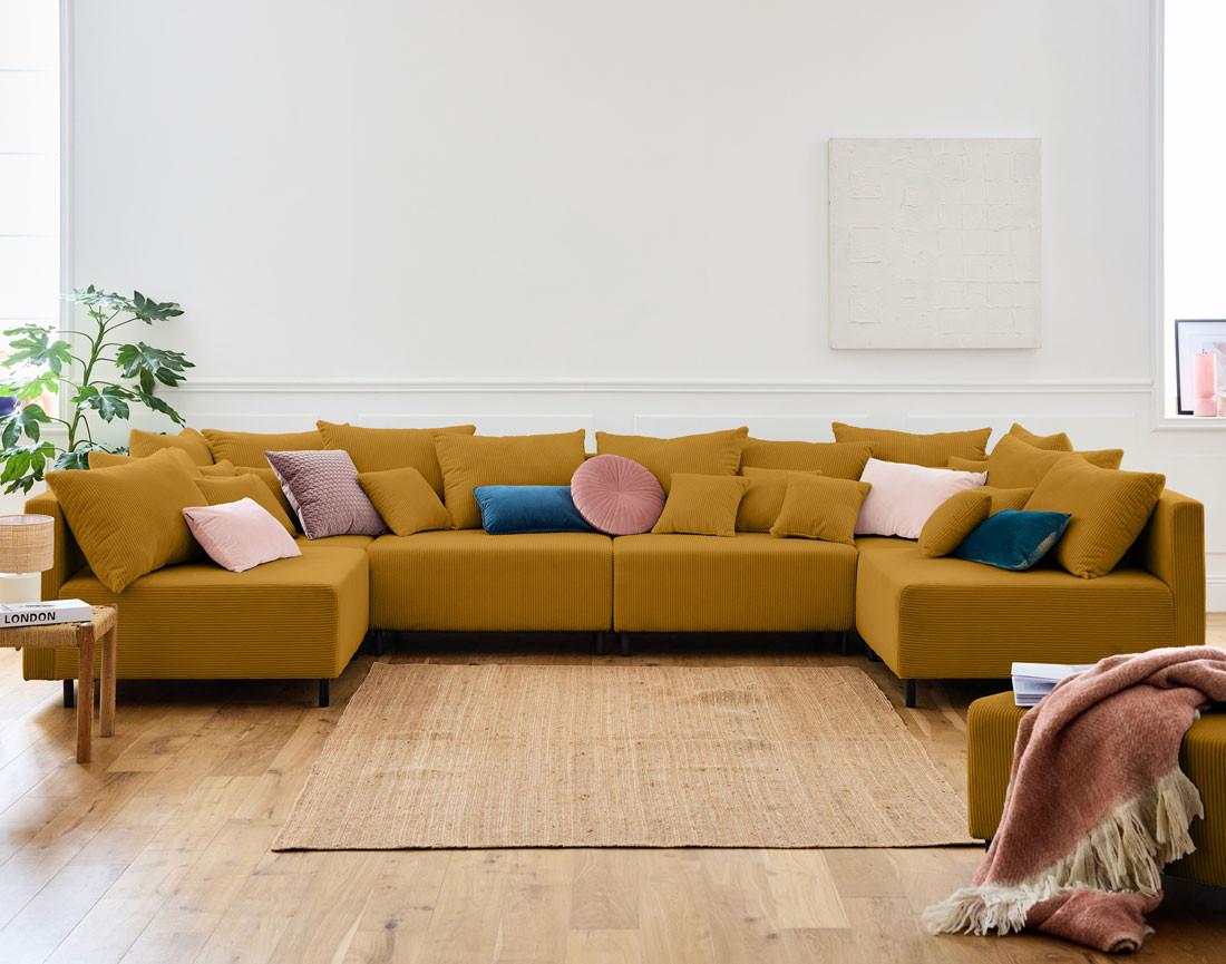 Edinburg - canapé modulable panoramique 6 places - en velours côtelé