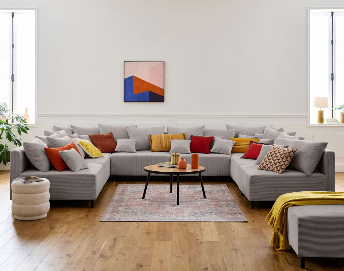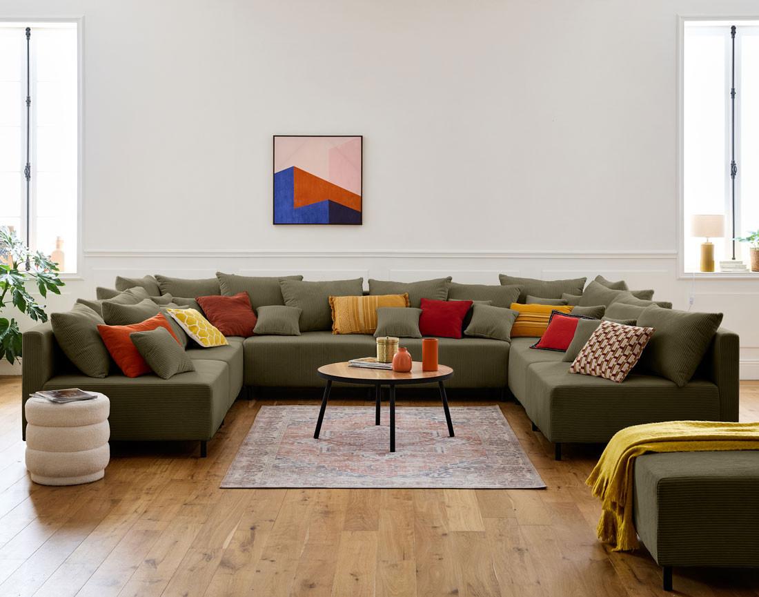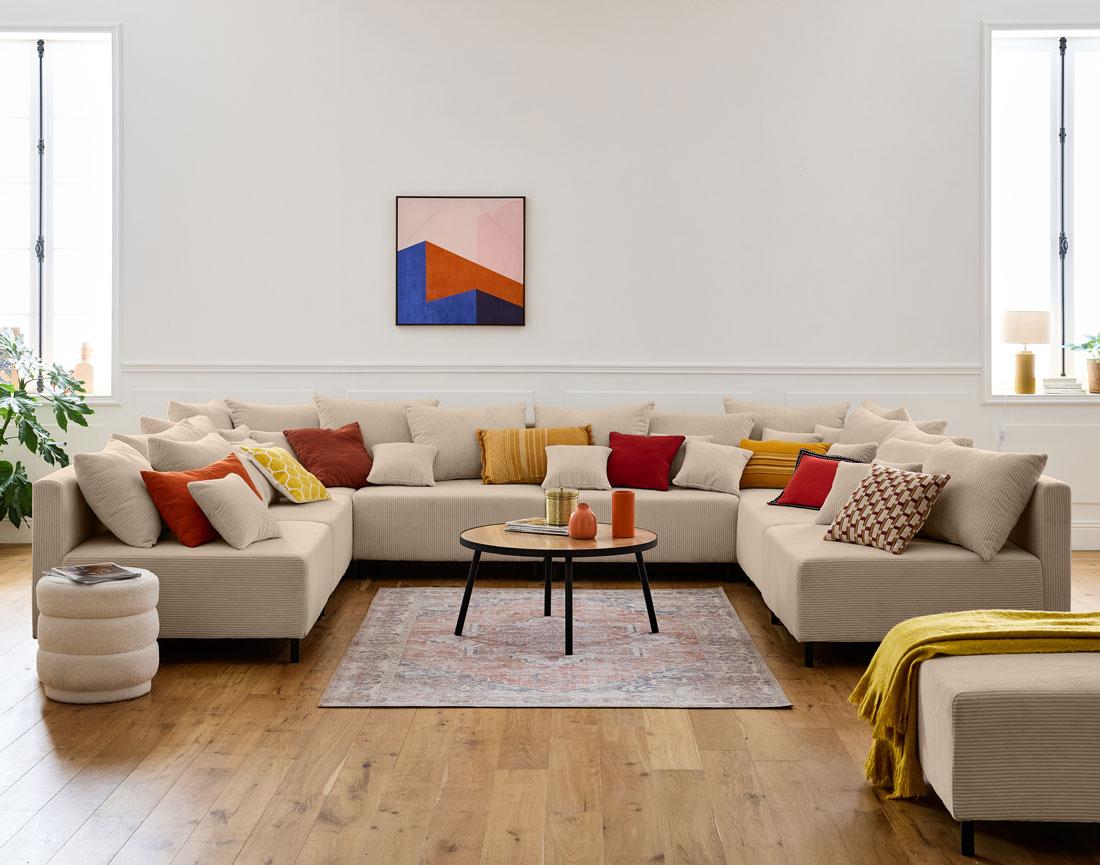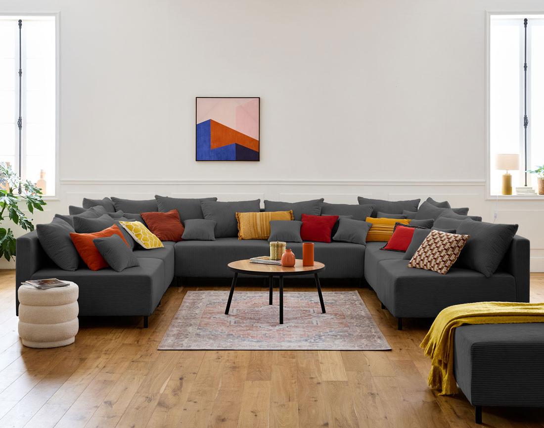 Edinburg - canapé modulable panoramique 8 places - en velours côtelé