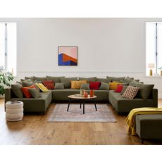 Avec ses 8 places généreuses, le canapé Edinburg transforme votre salon en un véritable havre de convivialité. Sa forme en U invite à la rencontre et à la détente, offrant un espace idéal pour partager des moments précieux en famille ou entre amis.