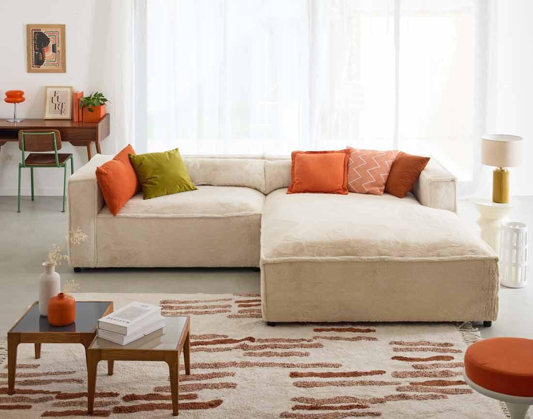 Beau et pratique, le canapé Ela est aussi conçu pour offrir un confort exceptionnel. Sa méridienne XXL moelleuse est parfaite pour s'étendre et se détendre après une longue journée. Le rembourrage généreux et les coussins douillets vous invitent à des moments de détente en famille ou entre amis. Chaque détail du canapé Ela a été pensé pour votre bien-être. Le dossier et les accoudoirs rembourrés ajoutent une touche supplémentaire de confort. Complétez cet espace avec des coussins moelleux ou un plaid tout doux et le tour est joué. Attention, vous risquez de ne plus avoir envie de sortir de chez vous !