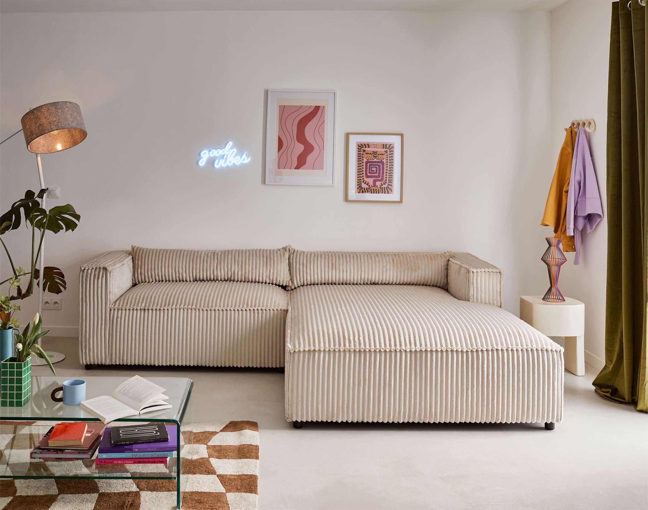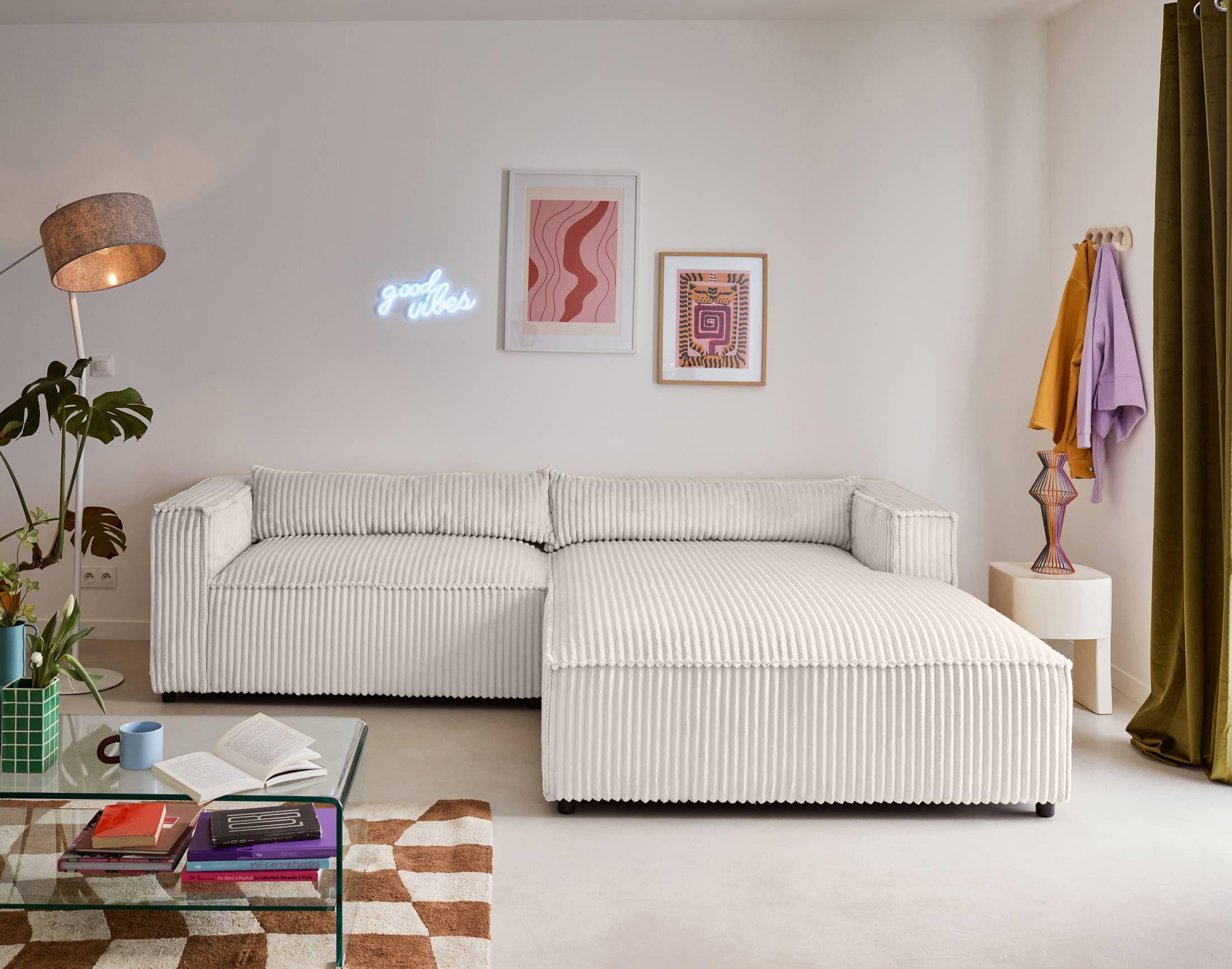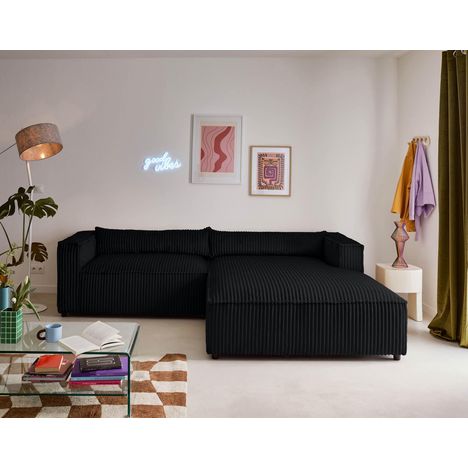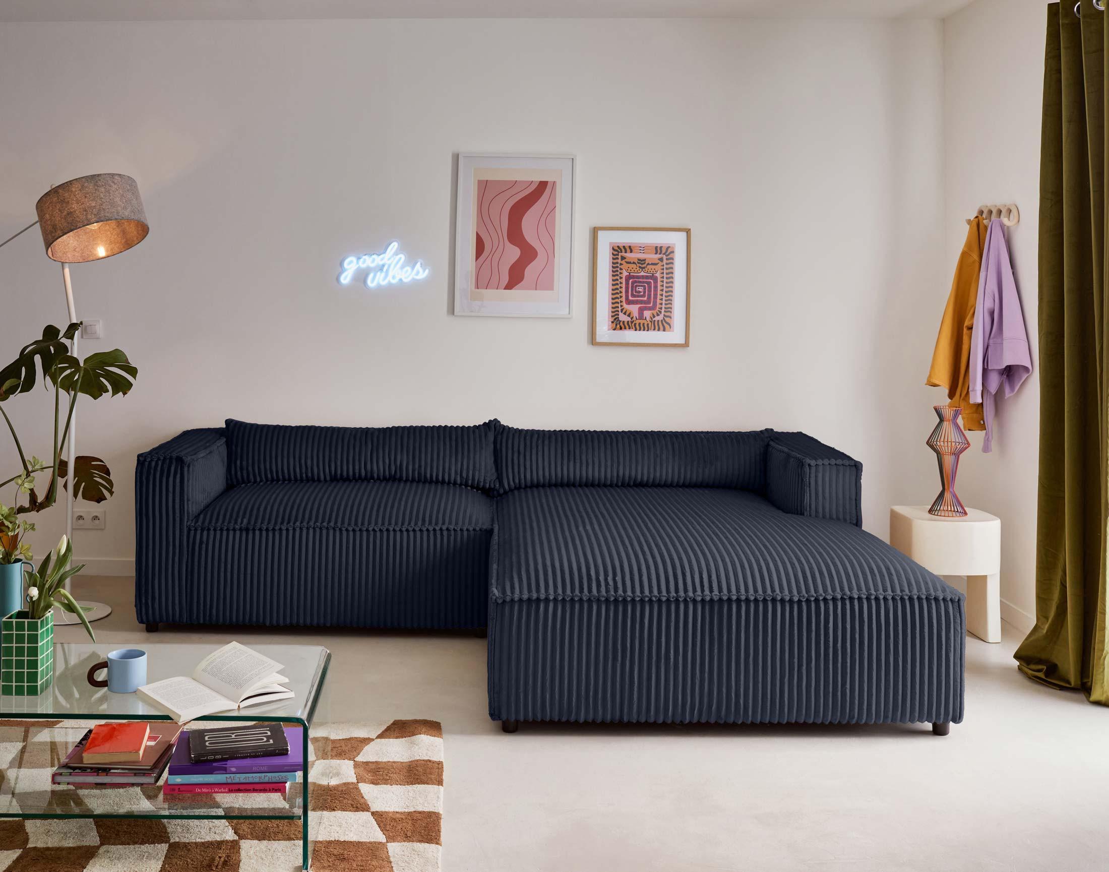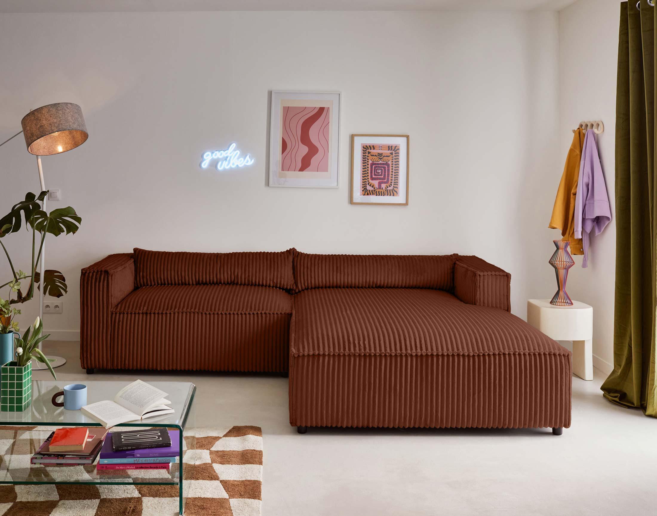 Ela - canapé d'angle droit - 4 places - en velours côtelé grosses côtes