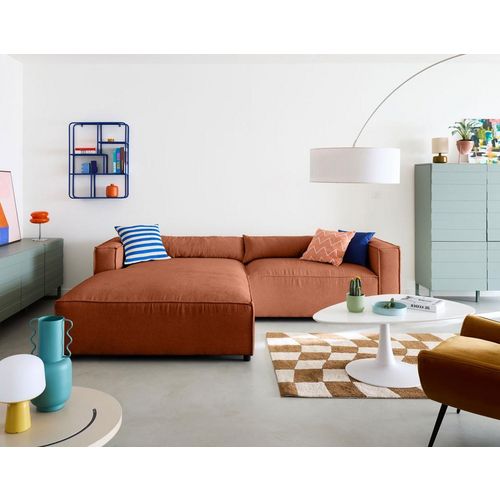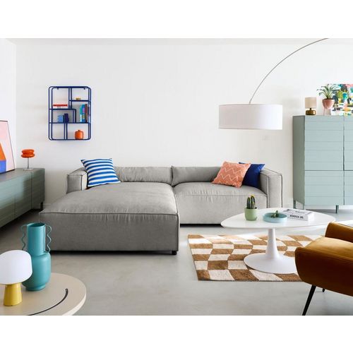 Ela - canapé d'angle gauche 4 places - en tissu velours relief