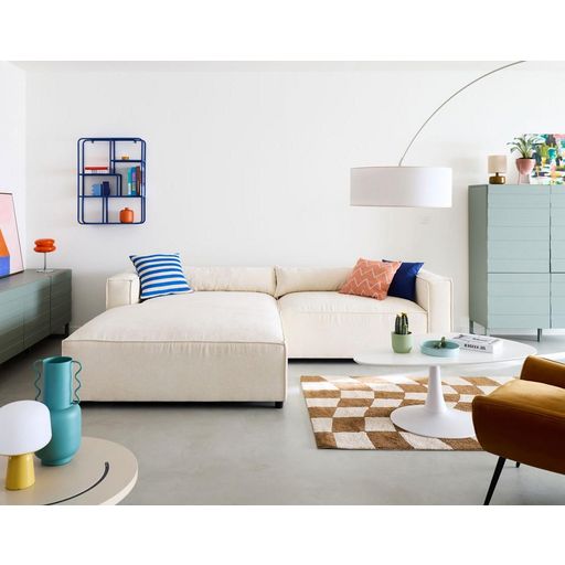 Faites le choix de la couleur avec le canapé d'angle Ela. La douceur du beige, la chaleur du terracotta, la fraîcheur du vert, l'élégance du bleu, la modernité du gris anthracite ou la subtilité du gris clair : chaque teinte a été soigneusement sélectionnée pour satisfaire tous les goûts et tous les styles de décoration. Le revêtement en velours relief apporte une touche de raffinement. Il est facile à entretenir et résiste aux taches et à l'usure. Le canapé d'angle Ela est conçu pour vous simplifier la vie. Grâce à son assemblage rapide et aisé, vous pourrez profiter de votre nouveau meuble en un rien de temps. De plus, sa fabrication européenne garantit une qualité et une durabilité élevées, pour un investissement sûr et pérenne.
