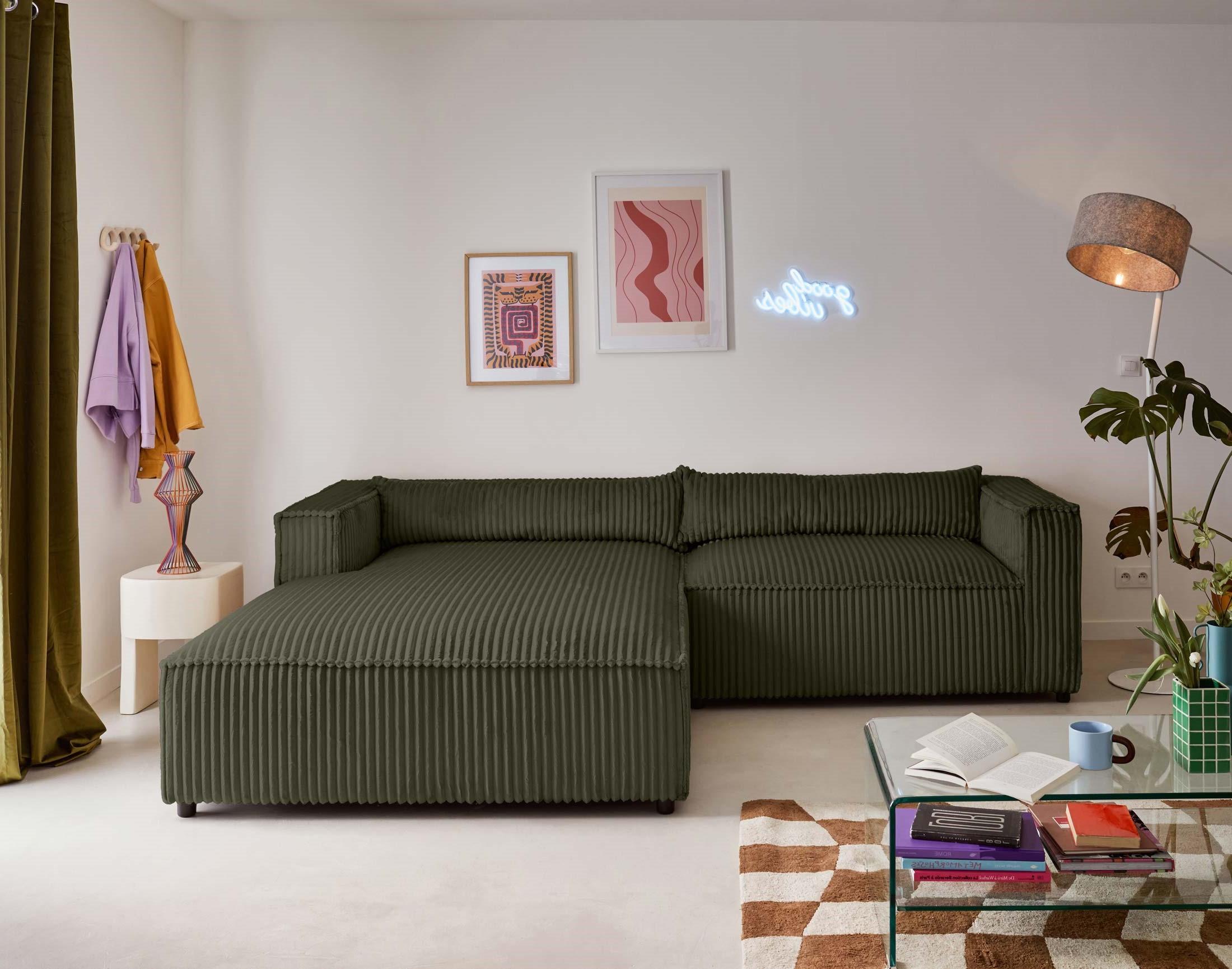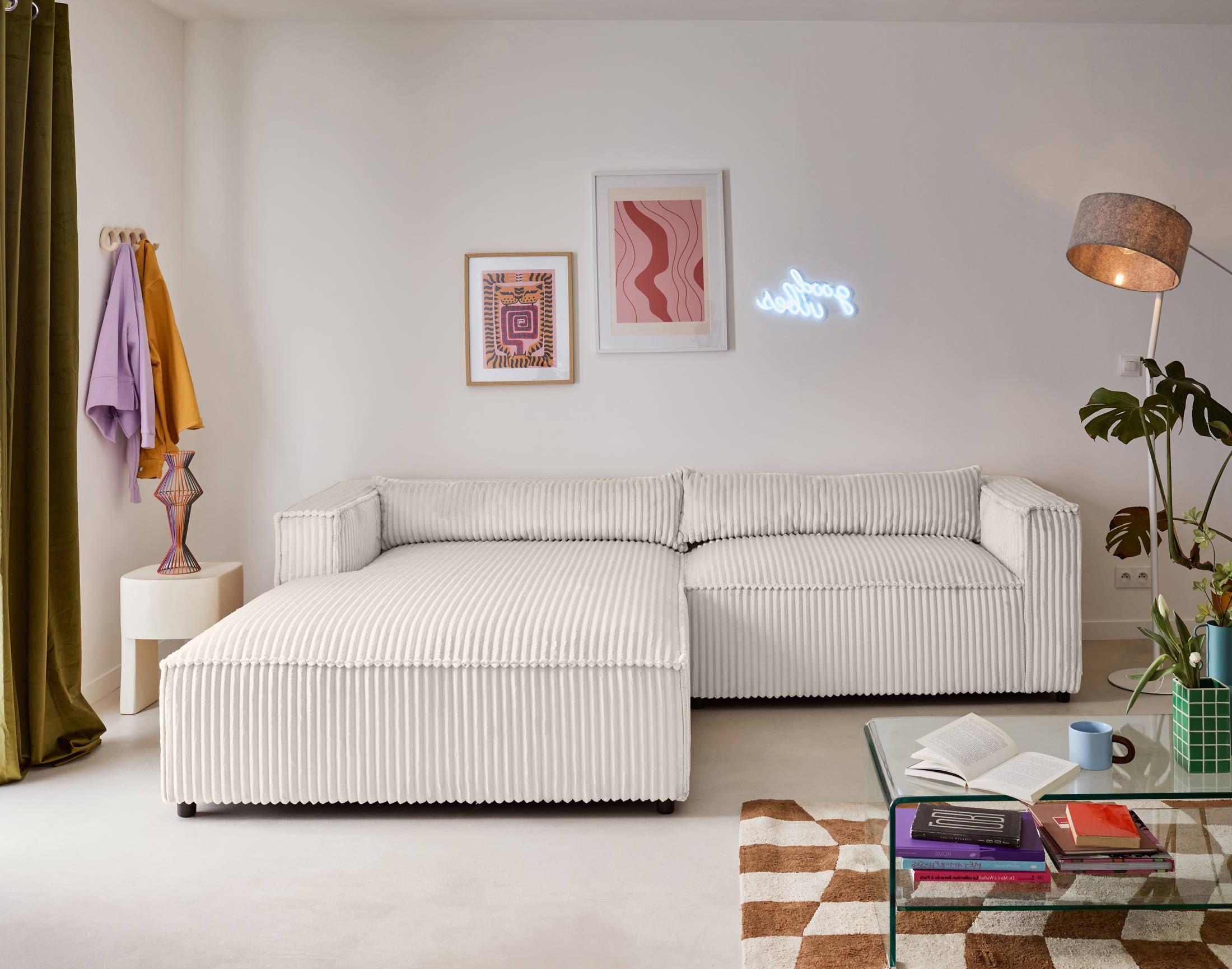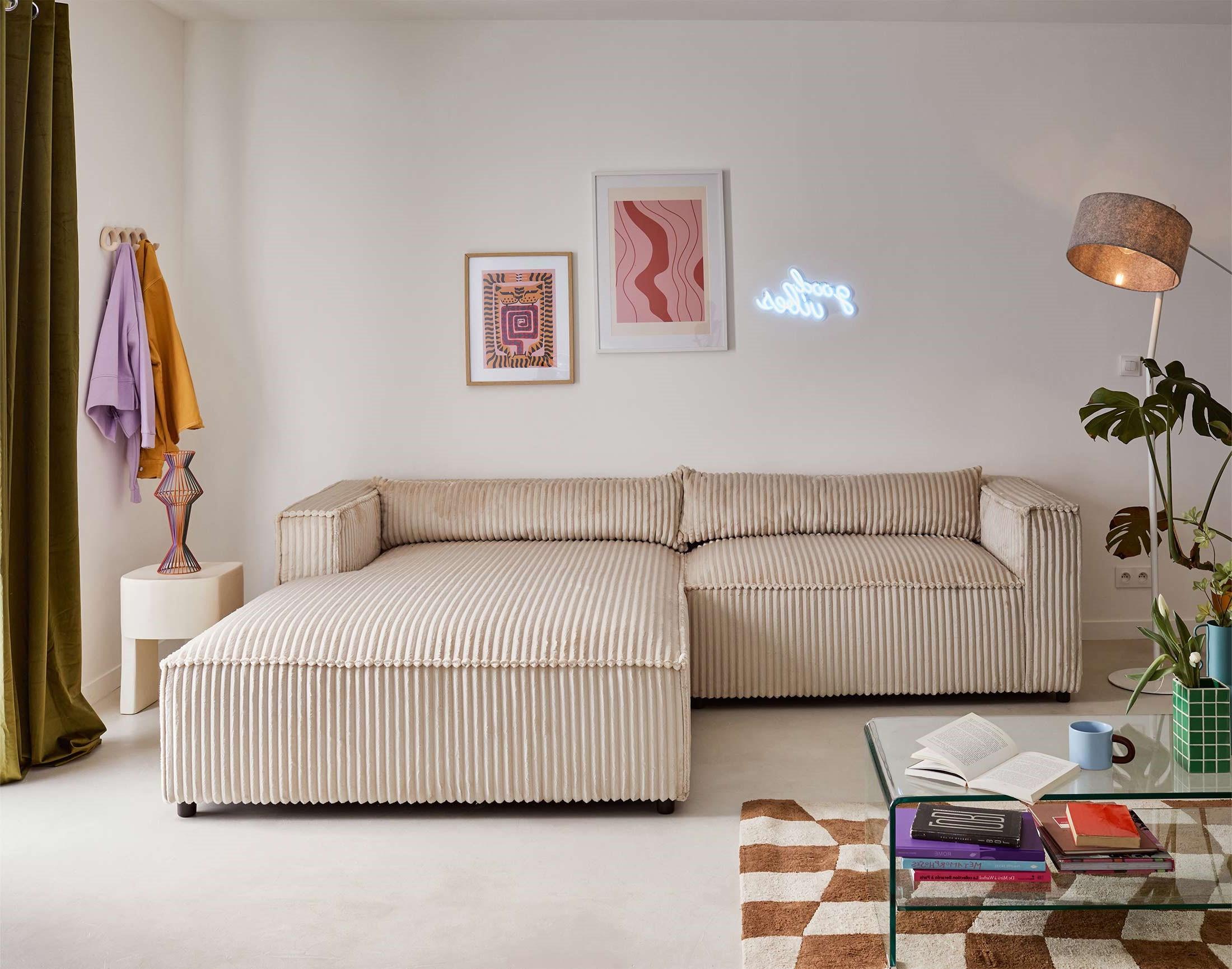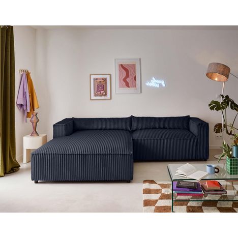 Ela - canapé d'angle gauche - 4 places - en velours côtelé grosses côtes