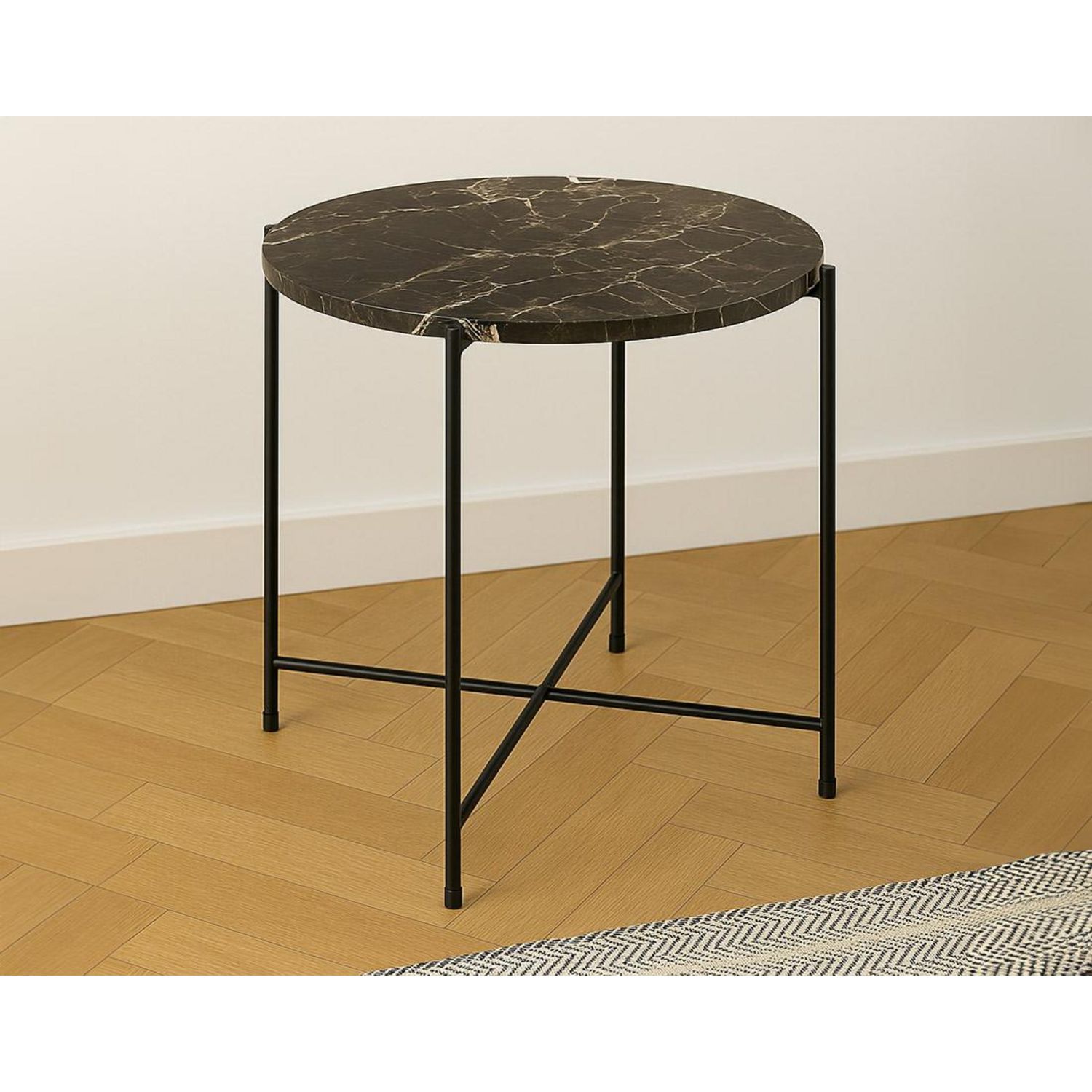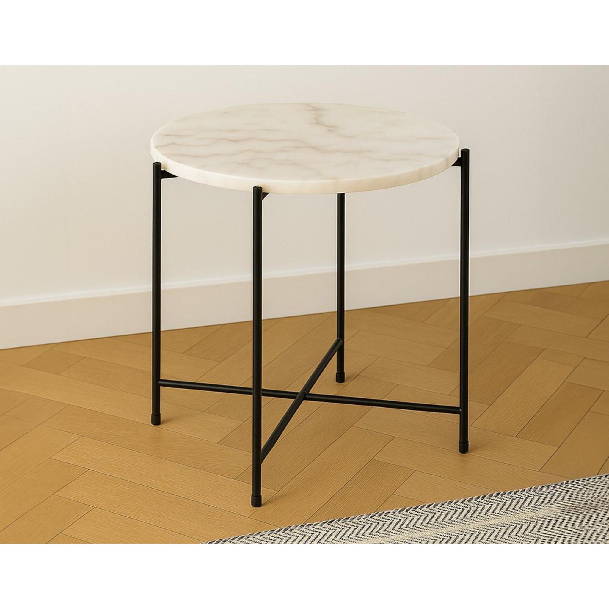 Ezaro - table basse ronde - 52 cm - plateau en marbre - pieds en acier