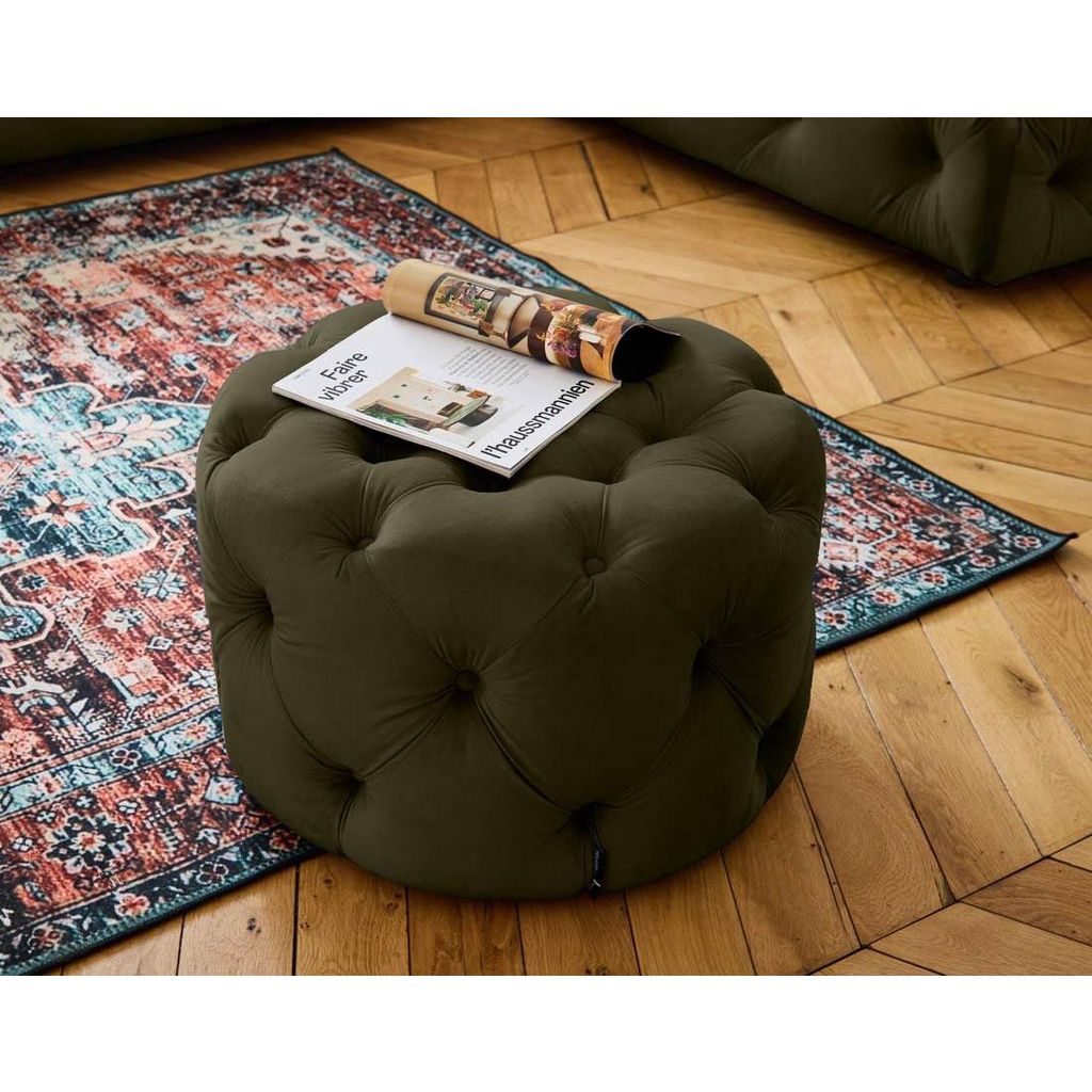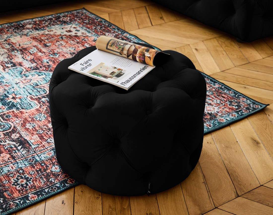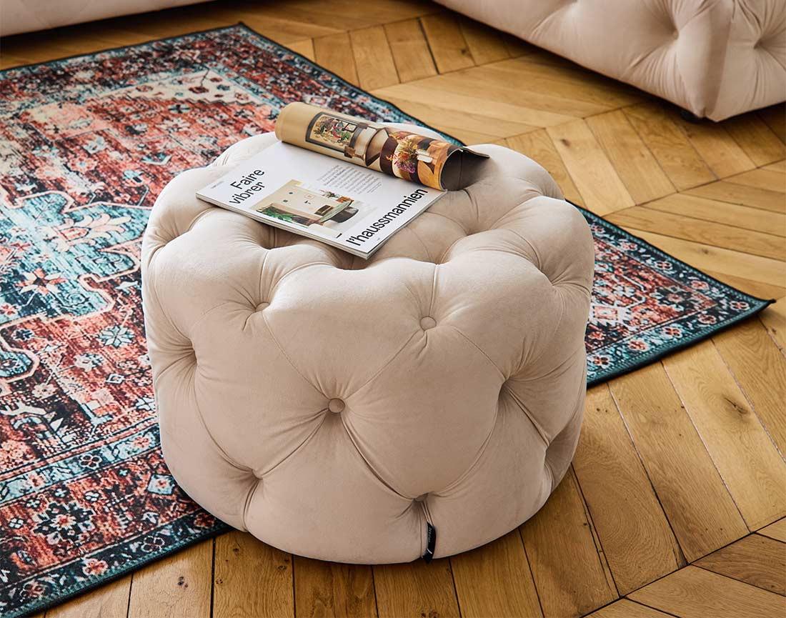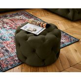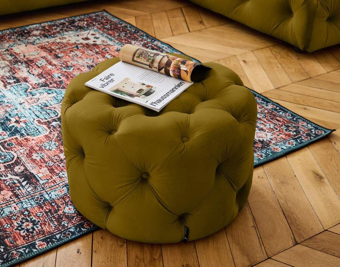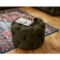 Avec son revêtement en velours et son capitonnage inspiré des assises britanniques, le pouf Gallata possède un charme rétro et une douceur incomparable.