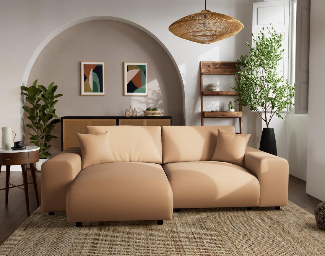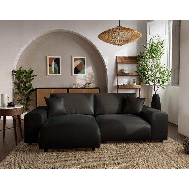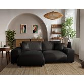 Le canapé Garance mise sur la polyvalence avec son angle réversible, vous permettant de positionner la méridienne du côté qui convient le mieux à votre espace. Son design accueillant est sublimé par une large méridienne, parfaite pour s'étendre confortablement à la fin de la journée. Avec sa forme généreuse et son assise bombée et moelleuse, ce canapé 4 places invite à la détente, que ce soit en solo ou entre amis. Son revêtement en simili apporte une touche contemporaine et facile d'entretien, idéale pour un salon au style affirmé.