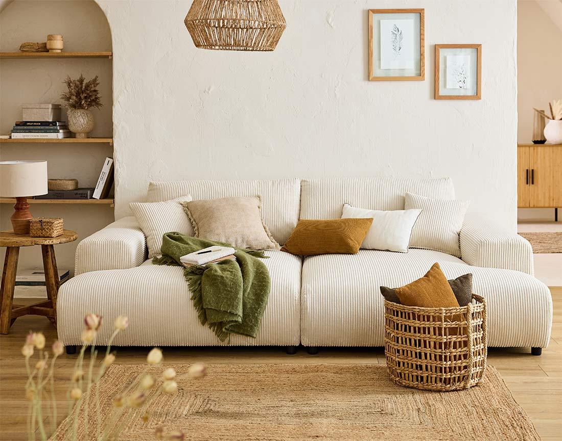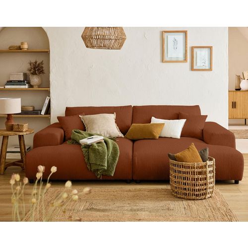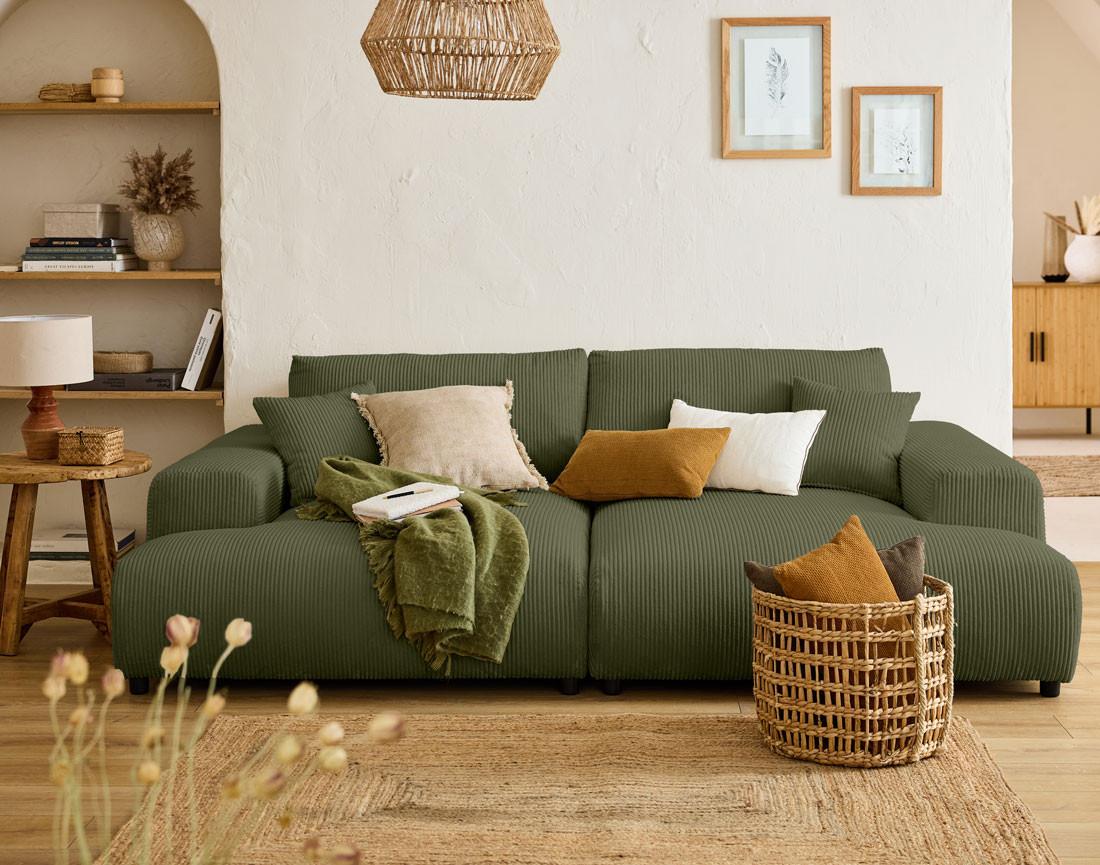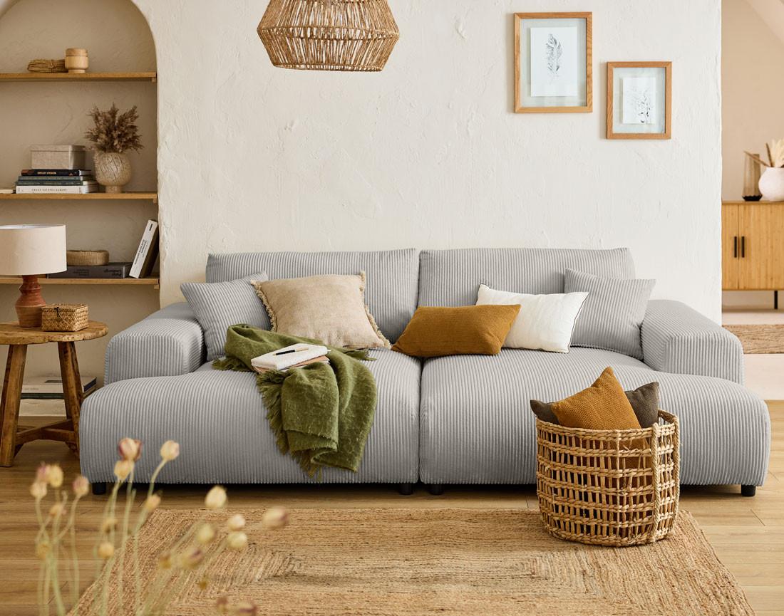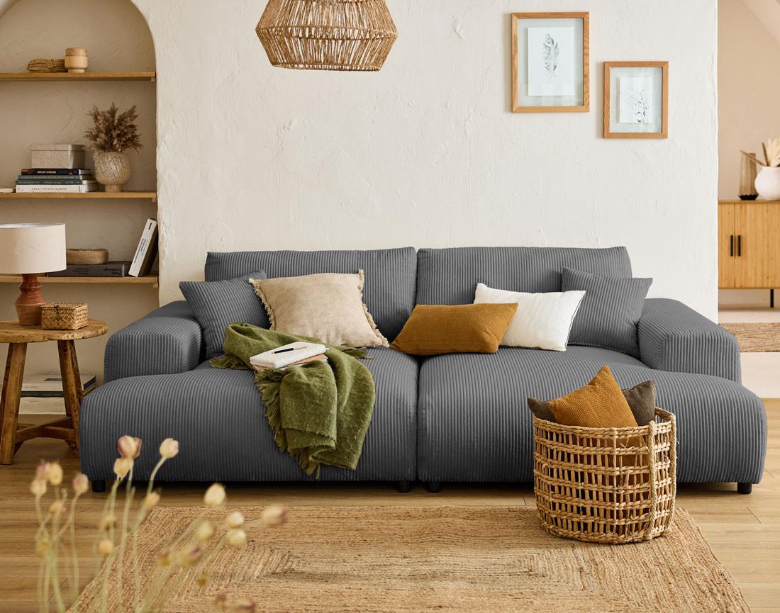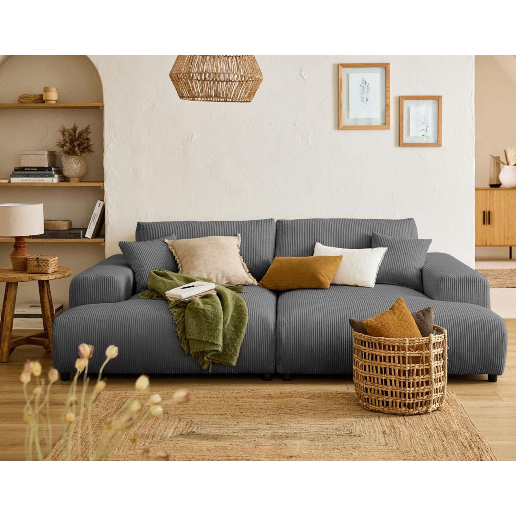 Garance - canapé droit 4 places double méridienne - assise profonde - en velours côtelé