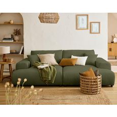 Détail des matières : Assise : Mousse polyuréthane 30kg/m3 – Dossier : Mousse polyuréthane 30kg/m3 - Ressorts ondulés – Structure : Bois massif et panneaux de particules - Revêtement en velours côtelé 100% polyester - Pieds en plastique
