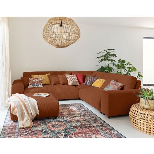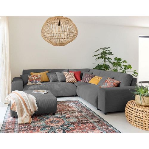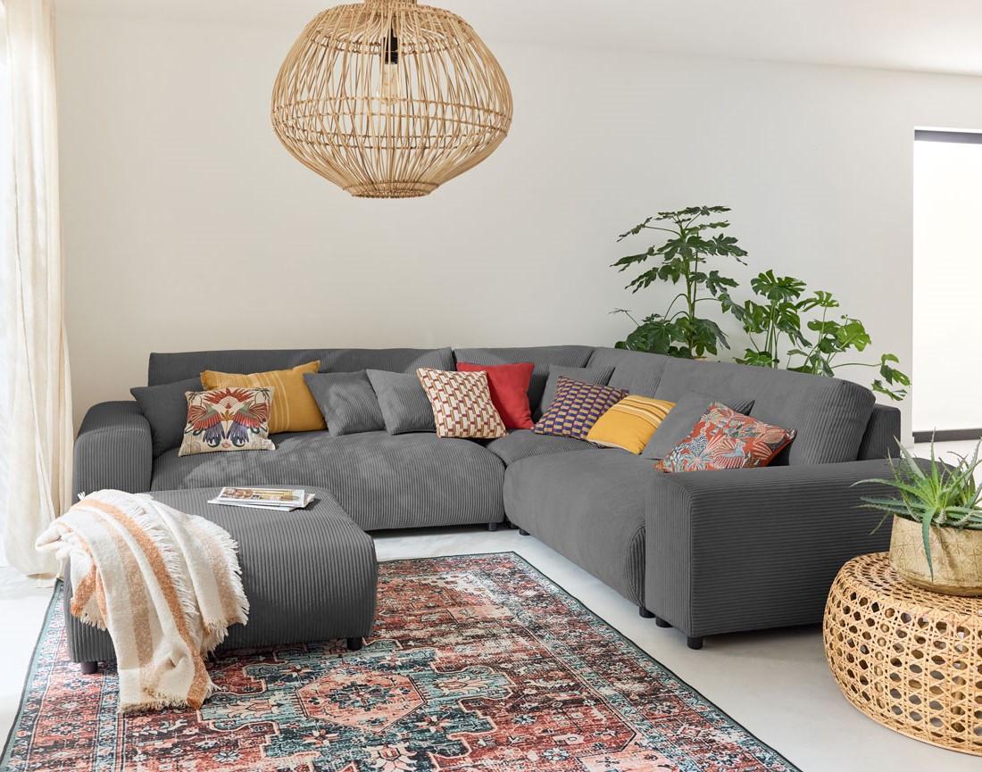 Garance - canapé modulable d'angle droit - 5 places - en velours côtelé
