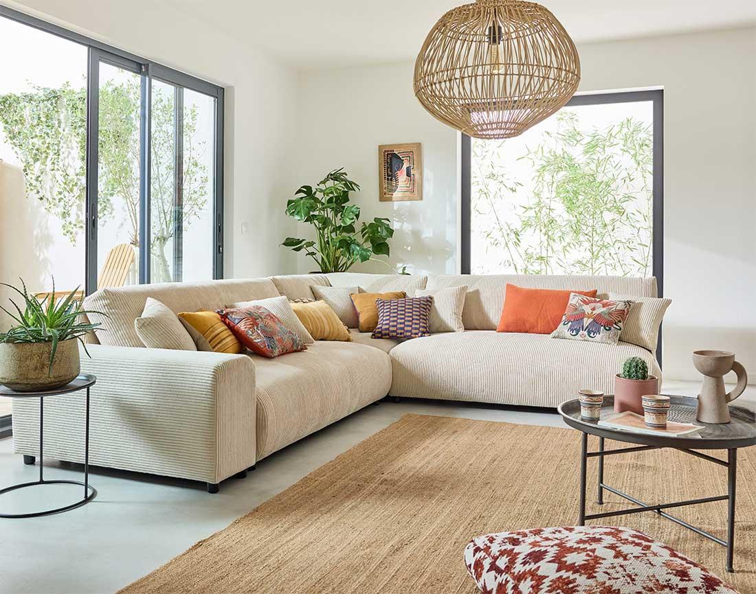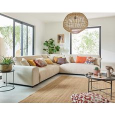 Doté de six places généreuses, ce canapé offre suffisamment d'espace pour accueillir toute la famille ou pour recevoir des invités en toute convivialité. Chaque assise est conçue pour offrir un confort optimal, vous permettant de vous détendre et de vous relaxer en toute tranquillité. Ajoutez-y le pouf Garance pour jouer avec les volumes et pouvoir recevoir encore plus d'invités.