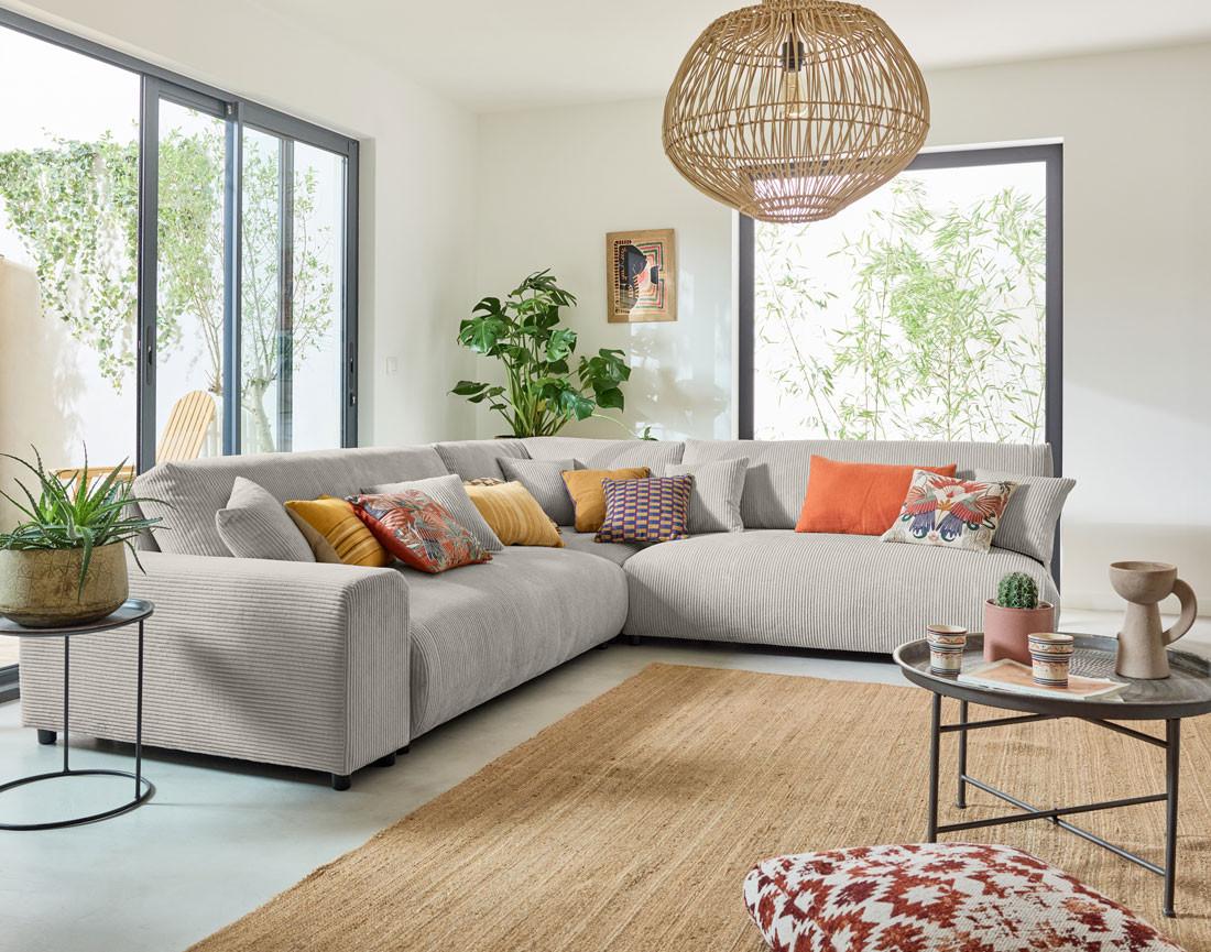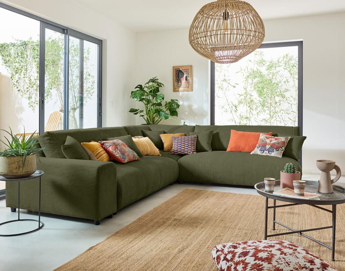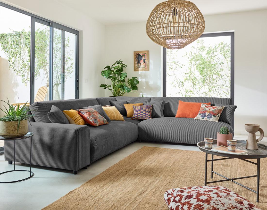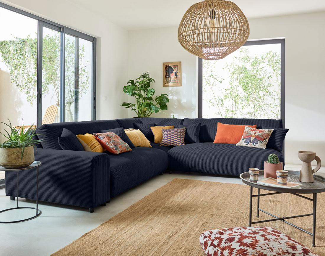 Garance - canapé modulable d'angle droit - 6 places - en velours côtelé