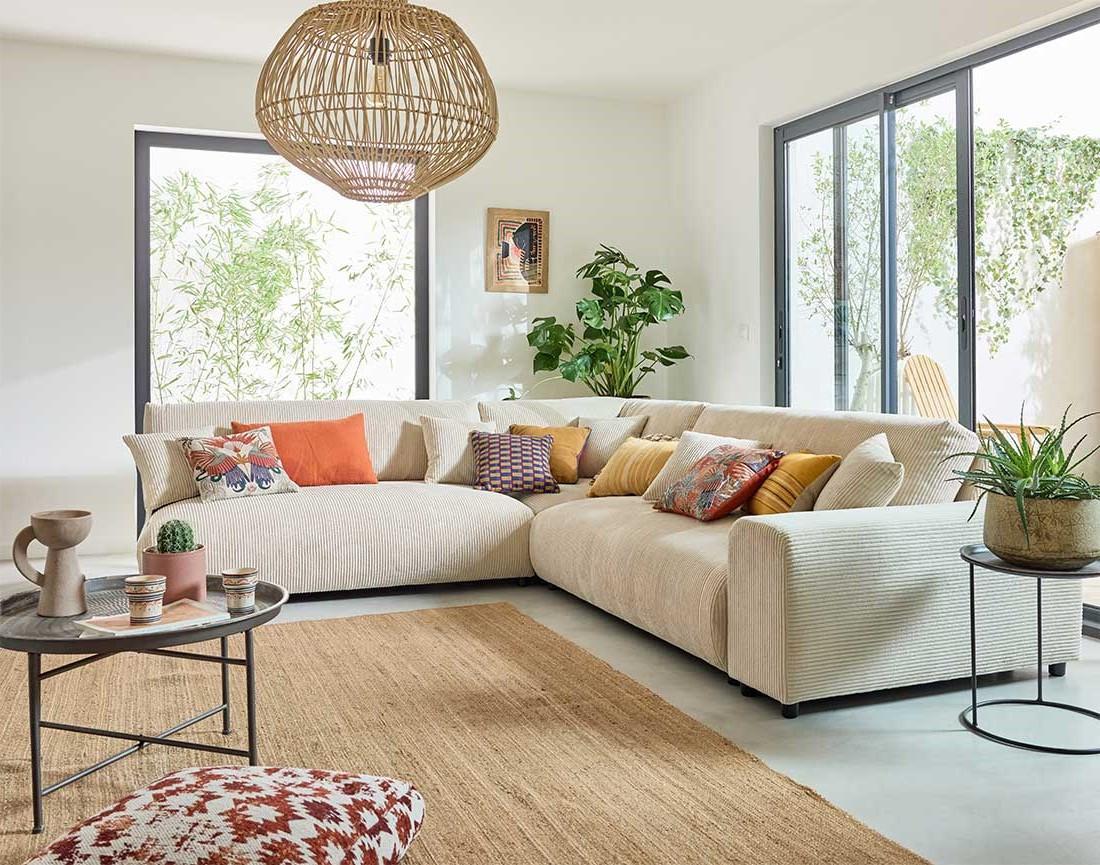Doté de six places généreuses, ce canapé offre suffisamment d'espace pour accueillir toute la famille ou pour recevoir des invités en toute convivialité. Chaque assise est conçue pour offrir un confort optimal, vous permettant de vous détendre et de vous relaxer en toute tranquillité. Ajoutez-y le pouf Garance pour jouer avec les volumes et pouvoir recevoir encore plus d'invités.