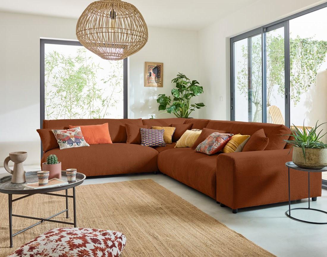 Son revêtement en velours côtelé apporte une touche de luxe et d'élégance à votre salon. Sa texture douce et raffinée crée une ambiance chaleureuse et accueillante, tandis que ses différents coloris disponibles se marie harmonieusement avec une variété de styles de décoration contemporaine. Ajoutez-y des éléments de décoration forts comme des tableaux colorés ou de grandes plantes.
