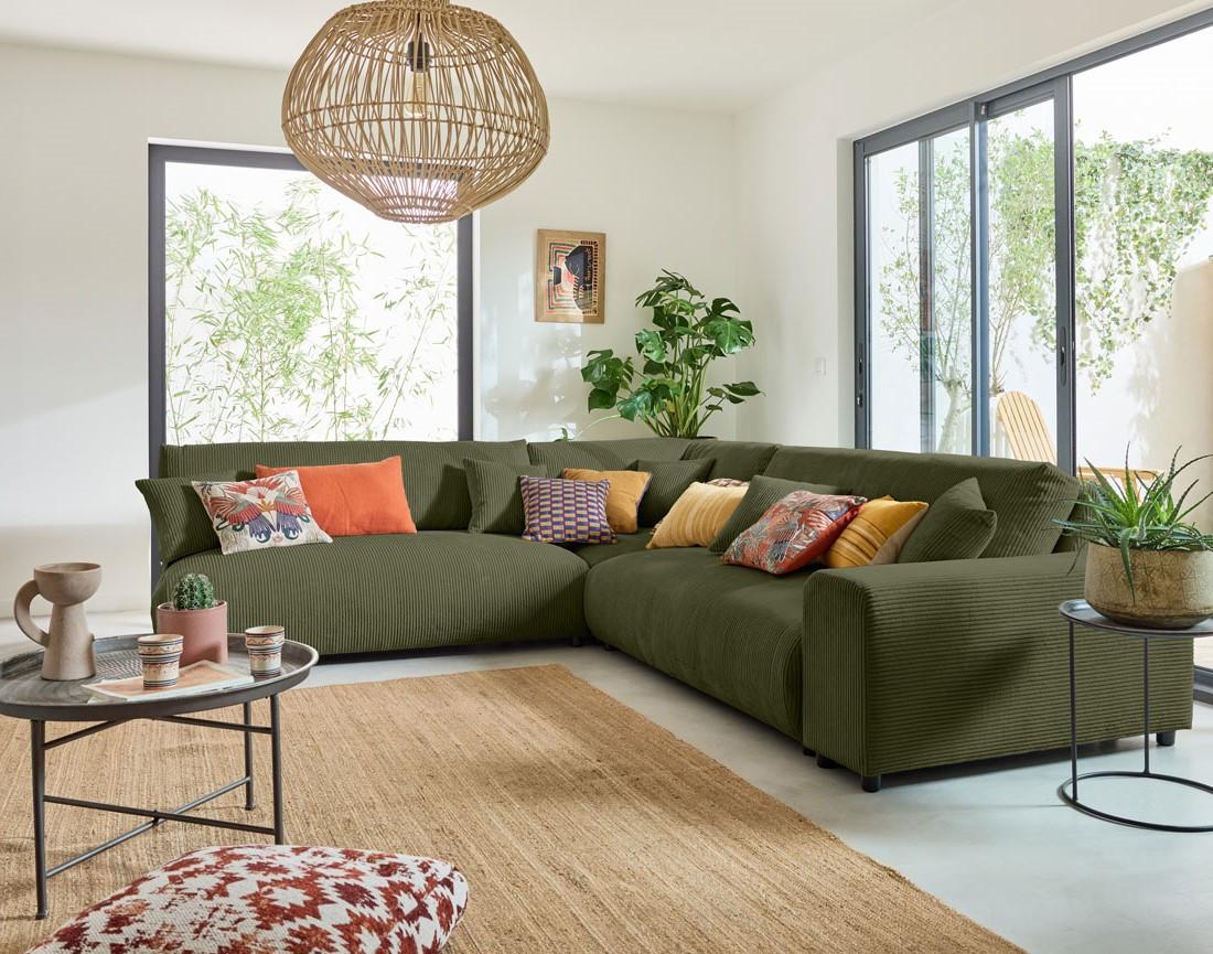 Garance - canapé modulable d'angle gauche - 6 places - en velours côtelé