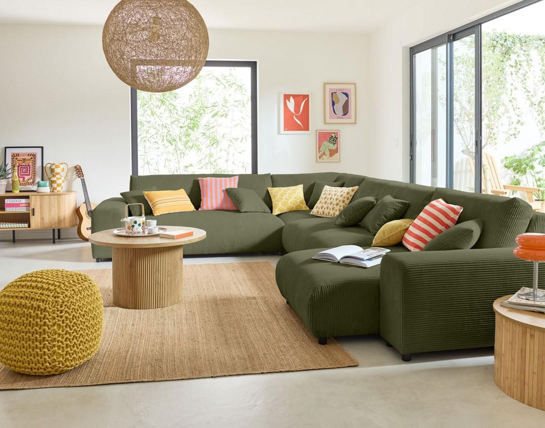 Garance - canapé modulable d'angle gauche - 8 places - en velours côtelé