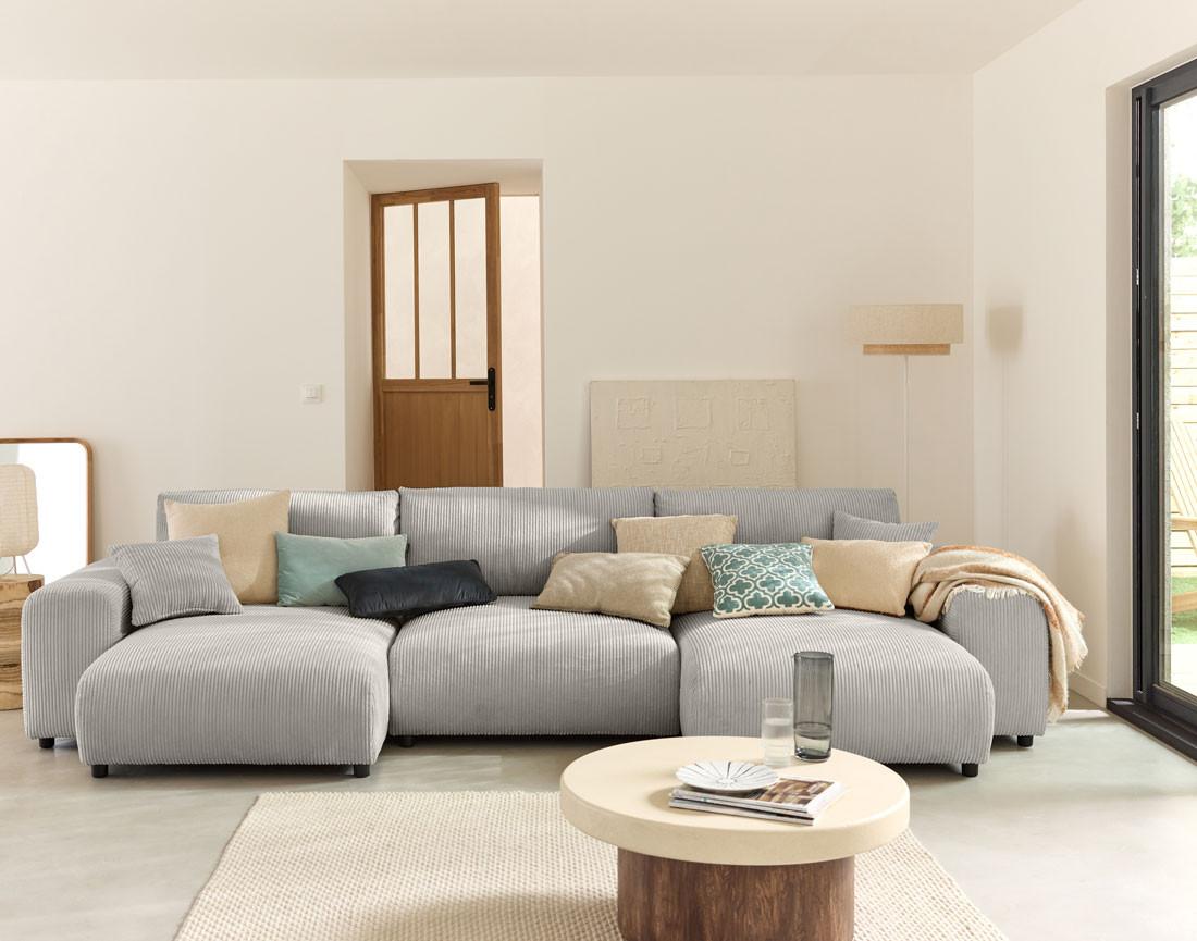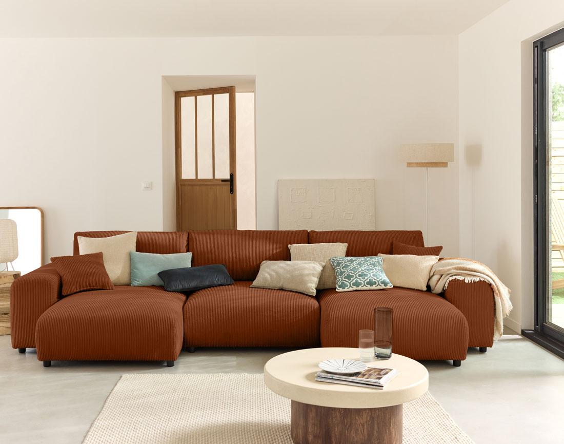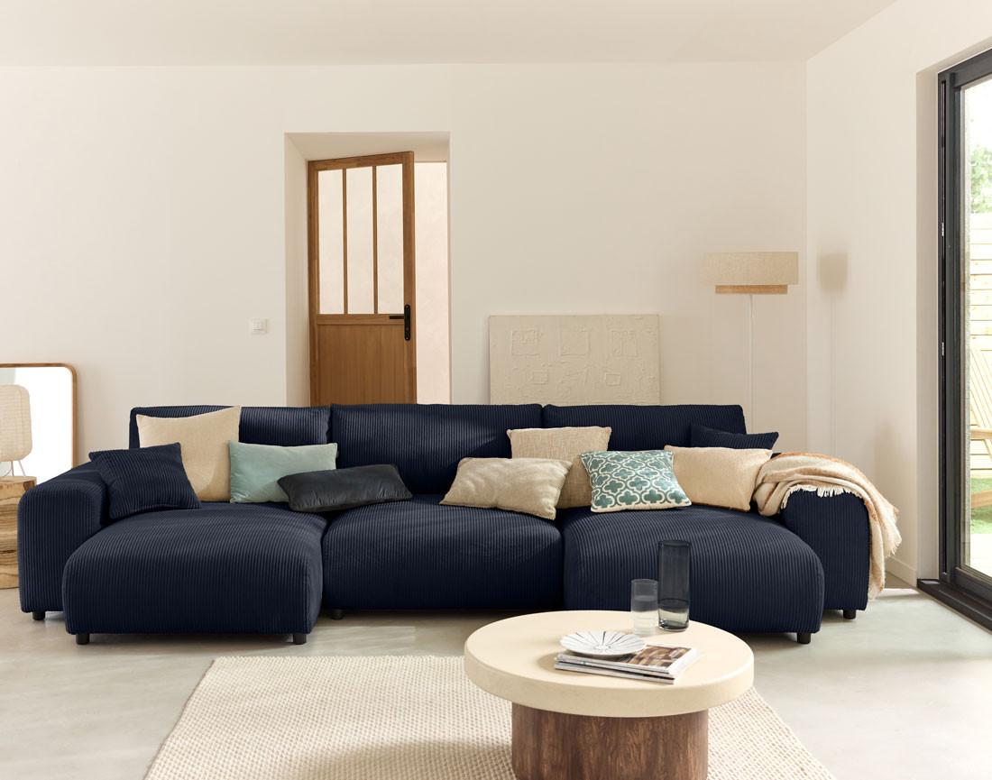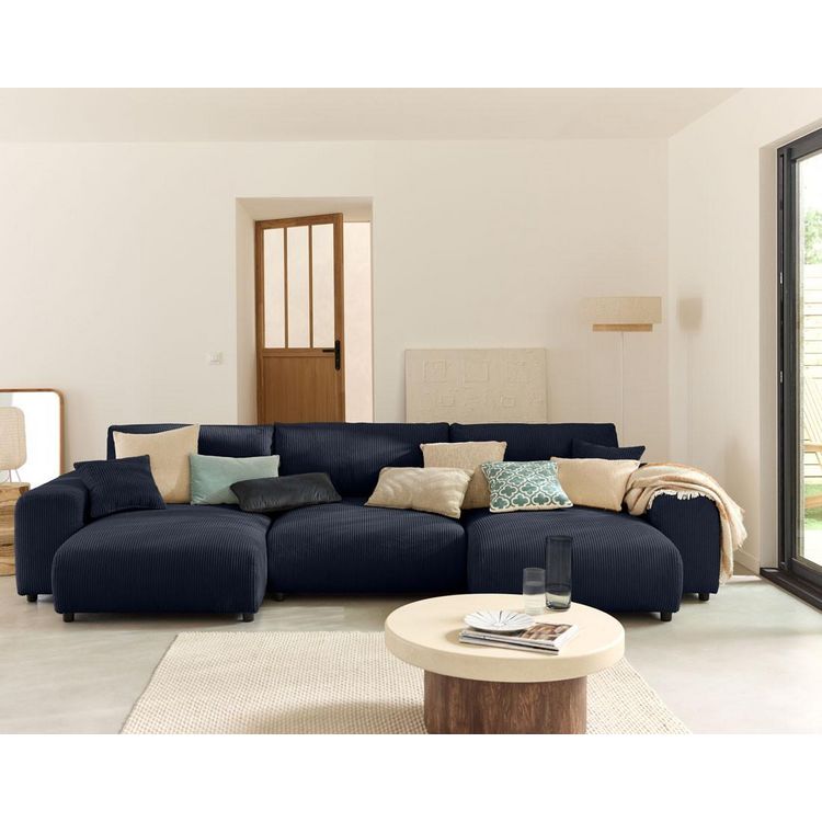 Garance - canapé panoramique en u - 7 places - en velours côtelé