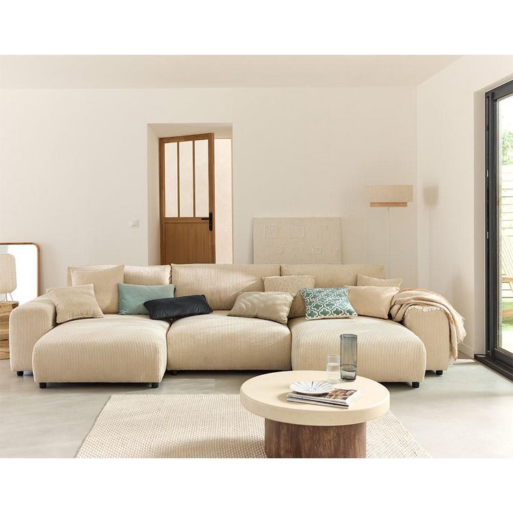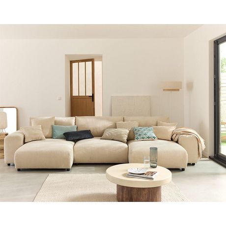Transformez votre salon en un havre de détente et de convivialité avec le canapé panoramique en U Garance. Conçu pour accueillir toute la famille grâce à ses 7 places et offrir un confort absolu, ce canapé spacieux et élégant est l'élément central parfait pour votre espace de vie. Doté d'une assise large et profonde et d'un revêtement en velours côtelé très doux au toucher, le canapé Garance est synonyme de confort. Ses coussins rebondis ajoutent un soutien supplémentaire, vous permettant de vous détendre et de vous relaxer en toute tranquillité.