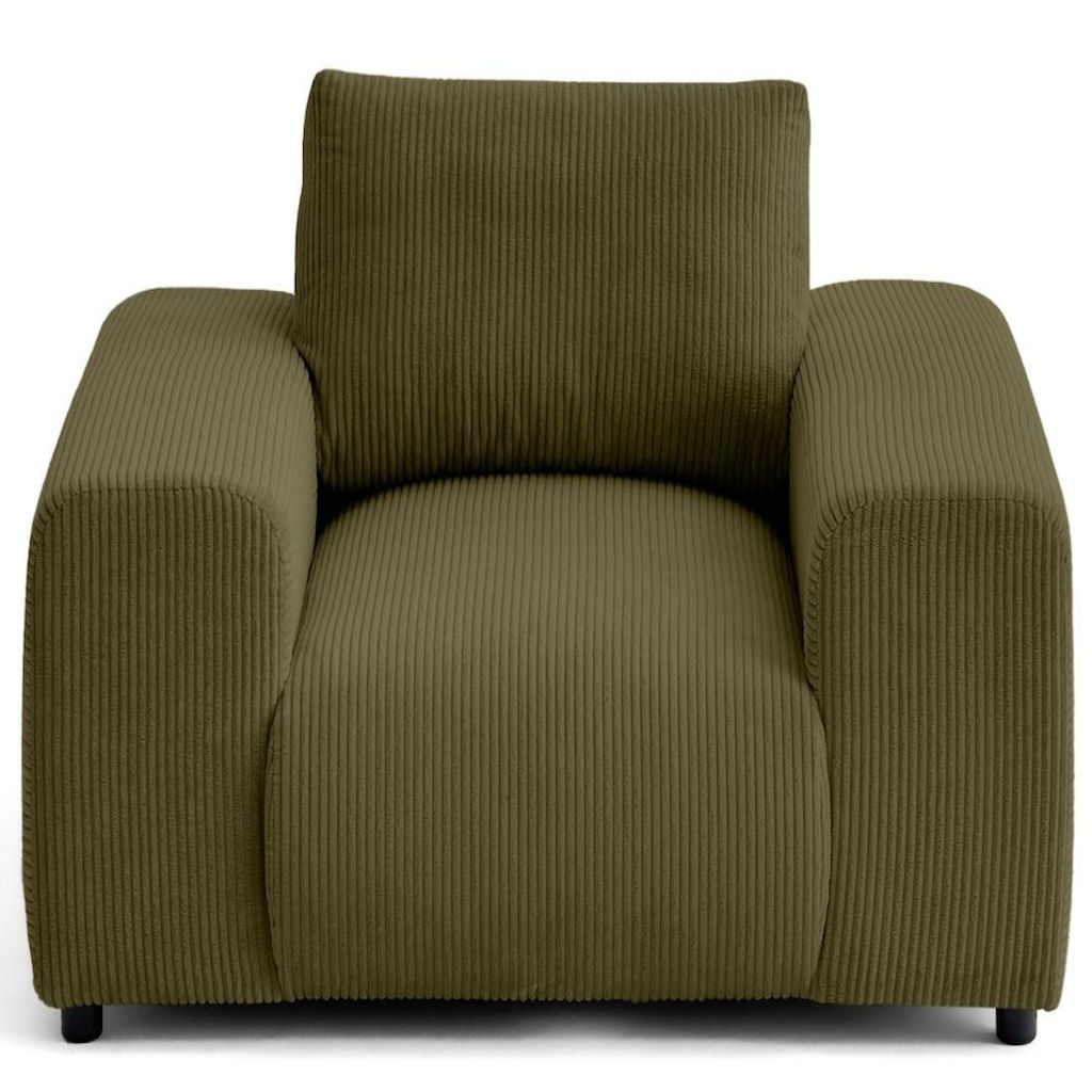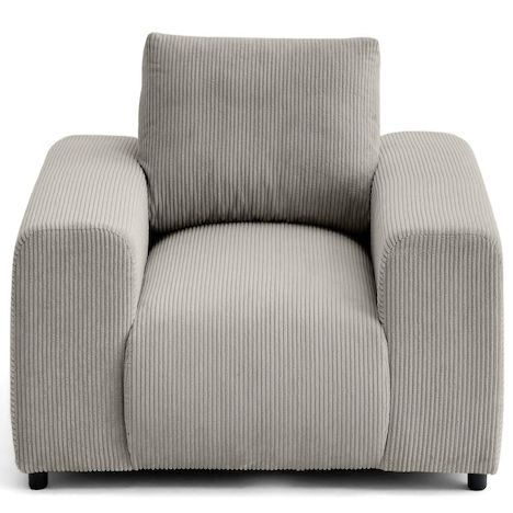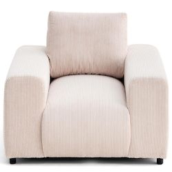 - Détail des matières : Assise : Mousse polyuréthane 30kg/m3 – Dossier : Mousse polyuréthane 30kg/m3 - Ressorts ondulés – Structure : Bois massif et panneaux de particules - Revêtement en velours côtelé 100% polyester - Pieds en plastique