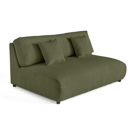 - Détail des matières : Assise : Mousse polyuréthane 30kg/m3 – Dossier : Mousse polyuréthane 30kg/m3 - Ressorts ondulés – Structure : Bois massif et panneaux de particules - Revêtement en velours côtelé 100% polyester - Pieds en plastique