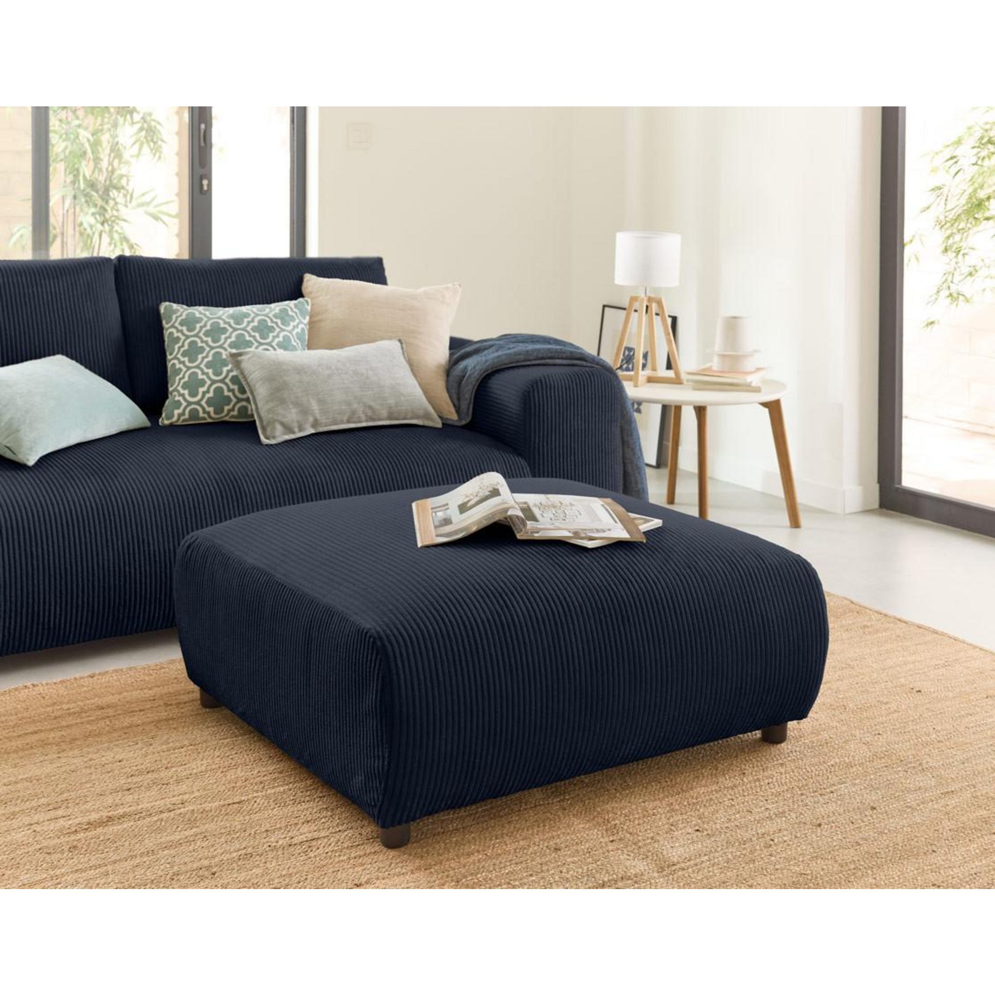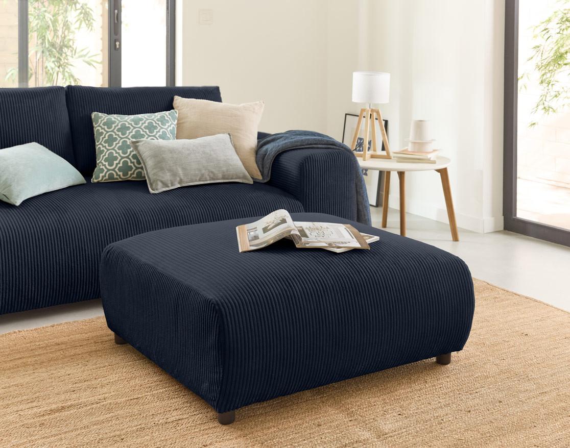 Un pouf polyvalent au revêtement en velours côtelé